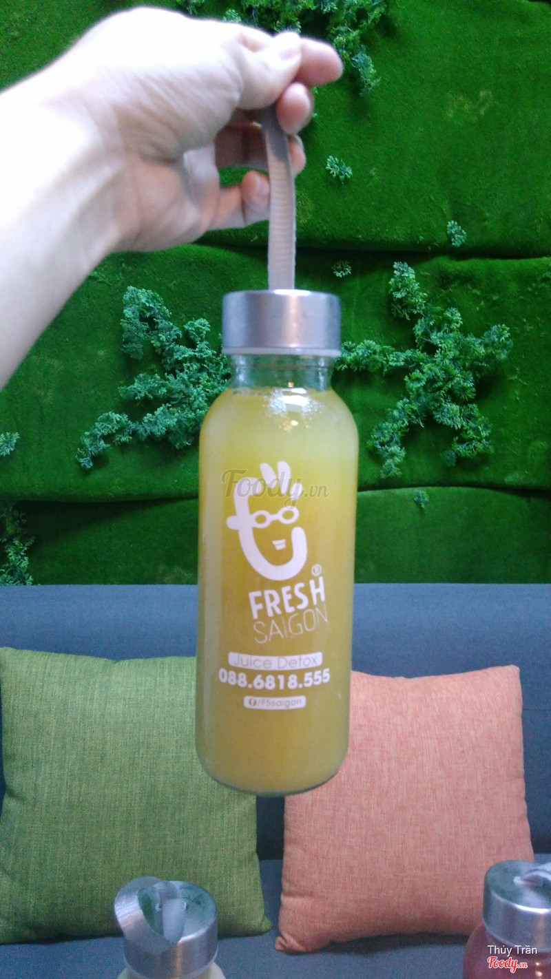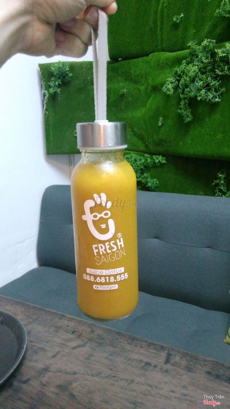 7.0Fresh Saigon: Coffee & Juice DetoxDo đã biết đường đến quán nên lần này đi không bị lố nữa. Không gian vẫn mát mẻ, rộng rãi và thoải mái. Đợt này nhóm mình quyết định order mấy loại nước ép để ring luôn bình thủy tinh nên mỗi đứa 1 chai luôn. Nước ép chất lượng rõ mùi vị, vừa uống, bình thủy tinh dày có quai cầm chắc chắn. Nhân viên phục vụ nhanh và vui vẻ. Giữ xe free trước quán có bảo vệ trồn coi và dắt xe cho khách. Ép dưa hấu 89k Ép thơm 89k Ép dâu hỗn hợp 109k Ép chuối 75k Ép xoài 89k ...Xem thêm