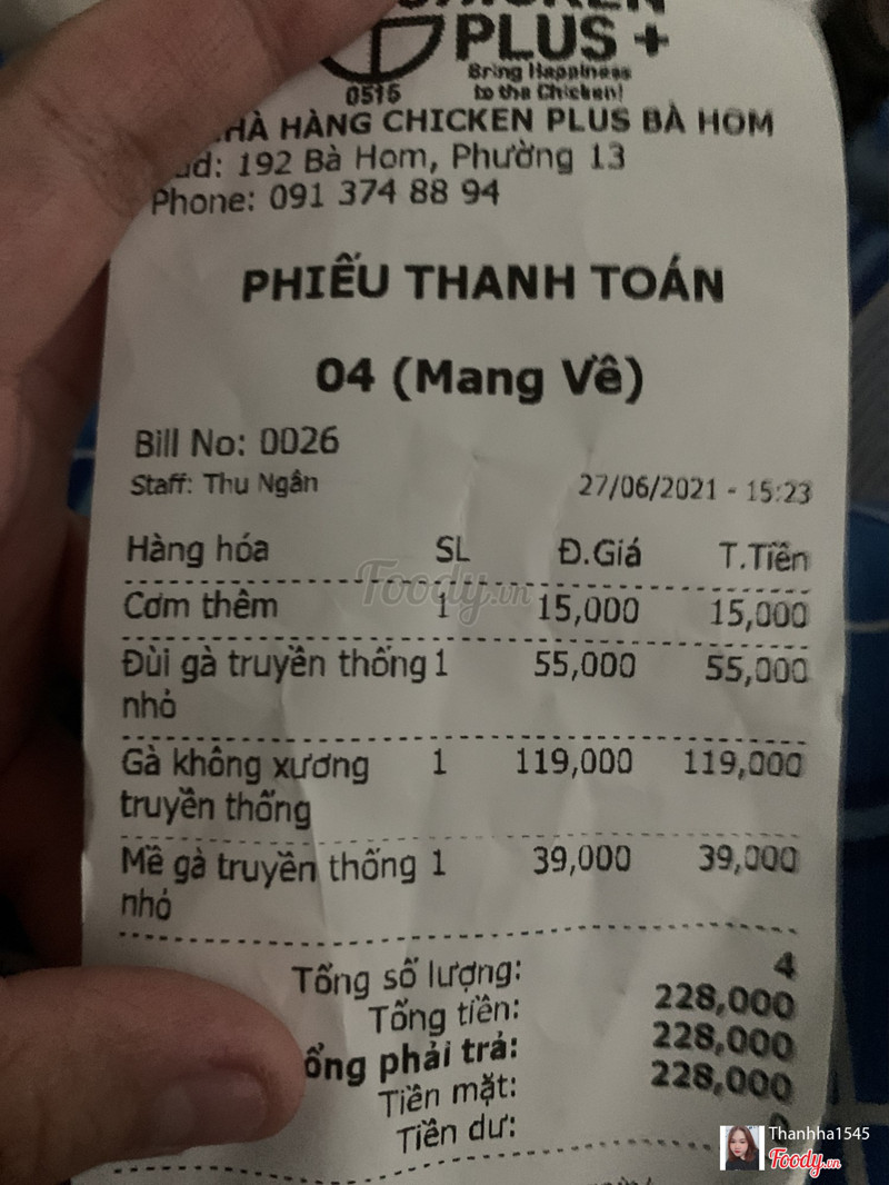 2.8Thất vọngHôm nay em đi mua thì em có kêu gà không xương truyền thống lớn nhưng lúc về nhà thì chỉ nhận được phần ăn gà không xuyên truyền thống nhỏ nhưng khi e nhắn tin thì không được hỗ trợ ...Xem thêm