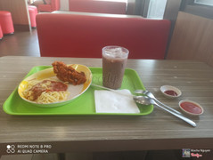 7.8Jollibee -***• Mình order 1 cơm gà súp bí đỏ và 1 cơm gà Sài Gòn sốt cay súp bí đỏ. Gà ở Jollibee thì khỏi nói rồi, lúc nào cũng ngon, còn cơm thì hơi khô. Đó giờ mình toàn ăn súp rau củ nên giờ Joll chuyển sang súp bí nên ăn không quen cho lắm. • Giá rẻ. ...View more