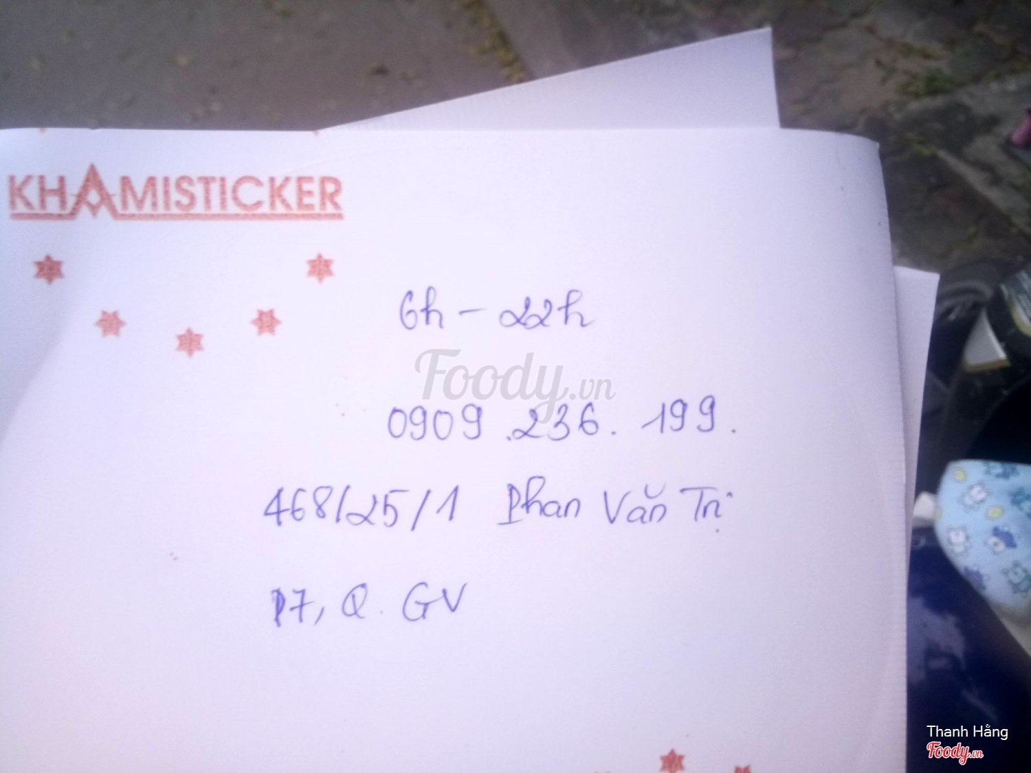 Ghi chú đặt bàn