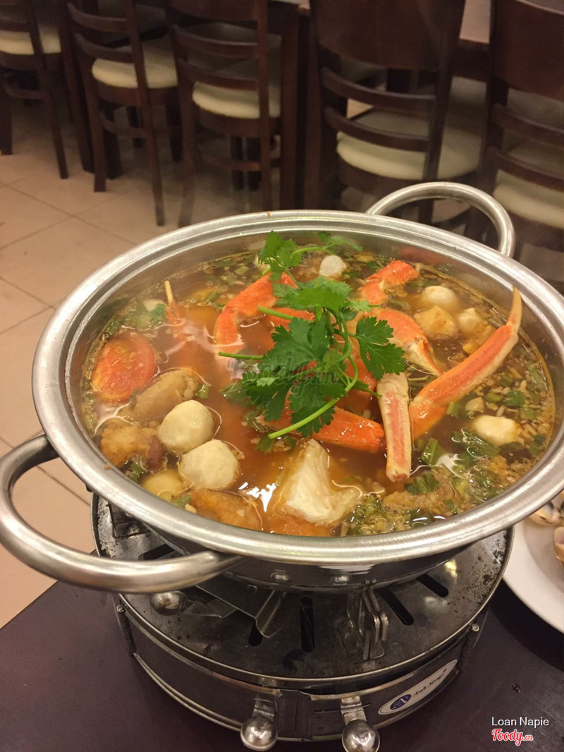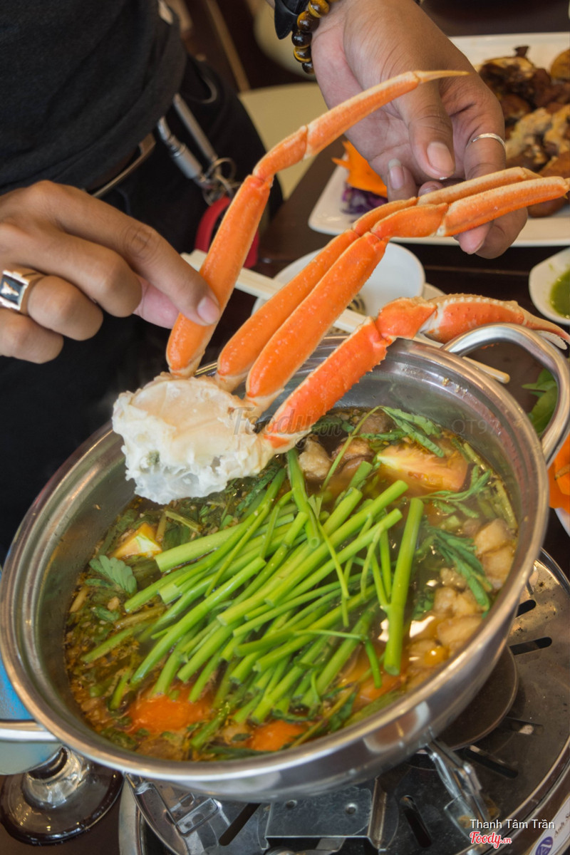 8.0Lẩu cua tuyết hải sản 199kNghe tên cua tuyết cũng lâu rồi mà hôm nay là lần đầu tiên được ăn thử. Quán chuyên về hải sản, nhất là tôm càng luôn. Giá cả thì cũng khá hợp lý, bằng giá bên kia luôn, được cái ko gian đẹp hơn, có máy lạnh, mát mẻ, sạch sẽ nữa. Lúc đầu chưa biết giá, nhìn bên ngoài thấy sang sang, nên cũng hơi ngại, ra vô coi menu xong thấy mừng húm. Đúng lúc có chương trình giảm combo Lẩu cua tuyết hải sản còn có 199k coi (giá gốc 235k ấy) nên đã ăn cái này. Lẩu này bao gồm cua tuyết, tôm, nghêu, cá viên bạch tuộc đầy đủ, đi kèm rau, bún, nước lẩu lun nha. Mình ăn cả nhà 5 người lận, có kêu thêm phần cua tuyết Canada rang sốt, cũng được giảm giá từ 159k còn 99k/phần nha. Hải sản tươi, nước lẩu nêm nếm ngon, chỗ ngồi thoải mái, ba mẹ mình ăn cũng khen. Mà lưu ý cái là promotion của quán áp dụng đến 15/4 thôi nghen, với phải alo đặt bàn trước để được ưu đãi á. Vị trí cũng dễ tìm: đi từ q1 lên quận 5 đường nguyễn chí thanh, rẽ trái đường nguyễn kim thì thấy ngay ngã 3 nguyễn kim - tăng bạt hổ là quán này. ...Xem thêm