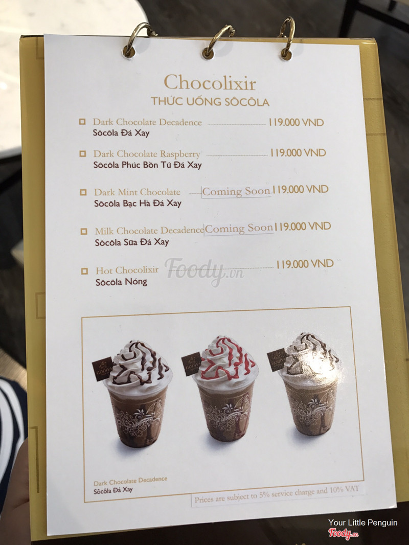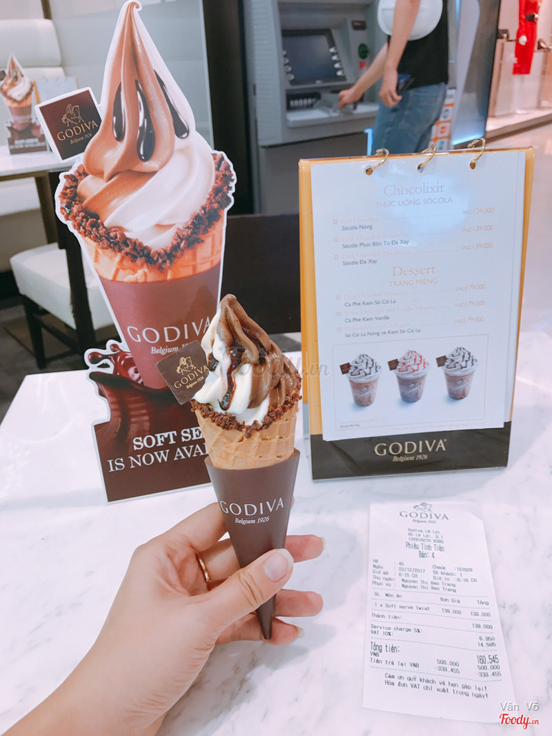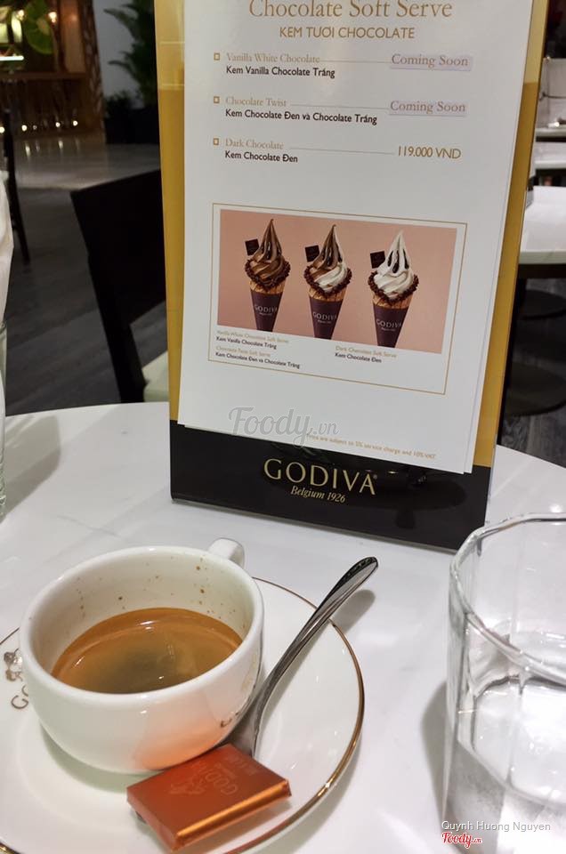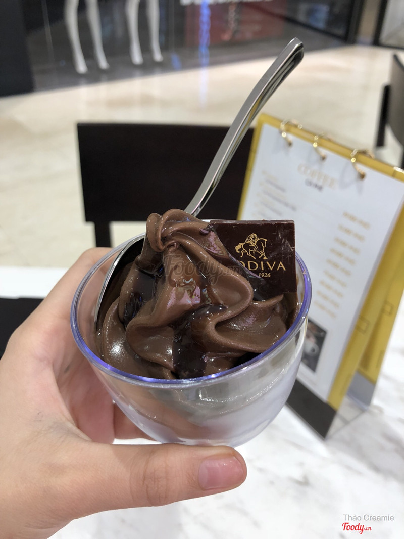 9.0Godiva - Saigon CentreQuán nằm ở tầng một đối diện cửa ra vào Saigon Centre. Quán chuyên về kem, thức uống socola và socola viên. Không gian sạch sẽ, thoáng mát, trang trí dễ thương, bắt mắt. Mình gọi 1 kem socola hai mùi, giá khá cao hơn 160.000 nhưng kem khá ngon, mềm mịn, ngọt lịm cực thích hợp cho các bạn hảo ngọt. Nhân viên nhanh nhẹn, nhiệt tình hay châm nước lọc cho khách. Nếu có dịp chắc chắn mình sẽ quay lại thử món khác và viết preview tiếp cho Foody nhé! ...Xem thêm