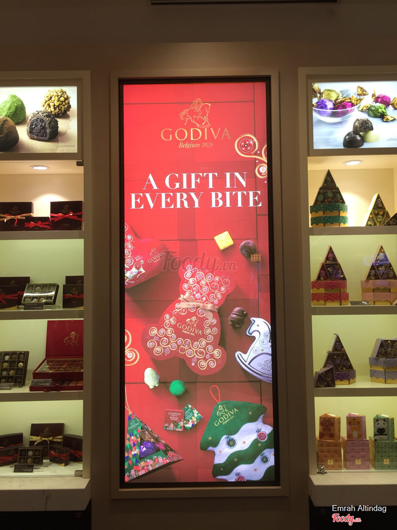 7.0Kem và socola siêu ngọt, giá mắcMình mới thử Godiva ở cửa hàng thứ hai mới mở bên Mplaza (trước là Kumho plaza). Chi nhánh này rộng rãi thoải mái, staff nhiều hơn khách và đều rất tận tình niềm nở :D Tiếc là cái mình muốn thử là kem soft serve twist (nửa socola nửa vanilla) lại chưa có ở bên này nên đành gọi kem dark chocolate. Ấn tượng đầu tiên là mặc dù đúng là vị socola thật nhưng mà làm từ socola sữa chứ không phải dark choc như tên gọi. Với mình thì quá ngọt và ngậy, ăn cố mãi mới hết nổi 1 chiếc và sợ luôn ^^ mình cứ hi vọng ít nhất phải được như vị socola đen của Haagen Dazs cơ mà thất vọng :( Bạn mình gọi 2 viên socola đen với socola caramel và phúc bồn tử ăn thử mà ăn được nửa viên hắn cũng hối hận ngay vì quá ngọt :D Giá thì cũng xác định từ đầu là chát rùi :D Kem 119k/cây, socola 49k/viên, single expresso 59k (chưa vat và phí phục vụ). Nói chung bạn nào ăn được ngọt thì có thể thấy ngon chứ khả năng quay lại của tớ trong tương lai gần là rất thấp, nếu có lỡ bị ai kéo đến thì sẽ thử món khác như kem vani hoặc cái chocolate drink tên là elixir j đấy xem sao. Mọi người xem thêm các review quán ăn chi tiết ở https://www.facebook.com/nomadquynh/ nhé :) ...Xem thêm