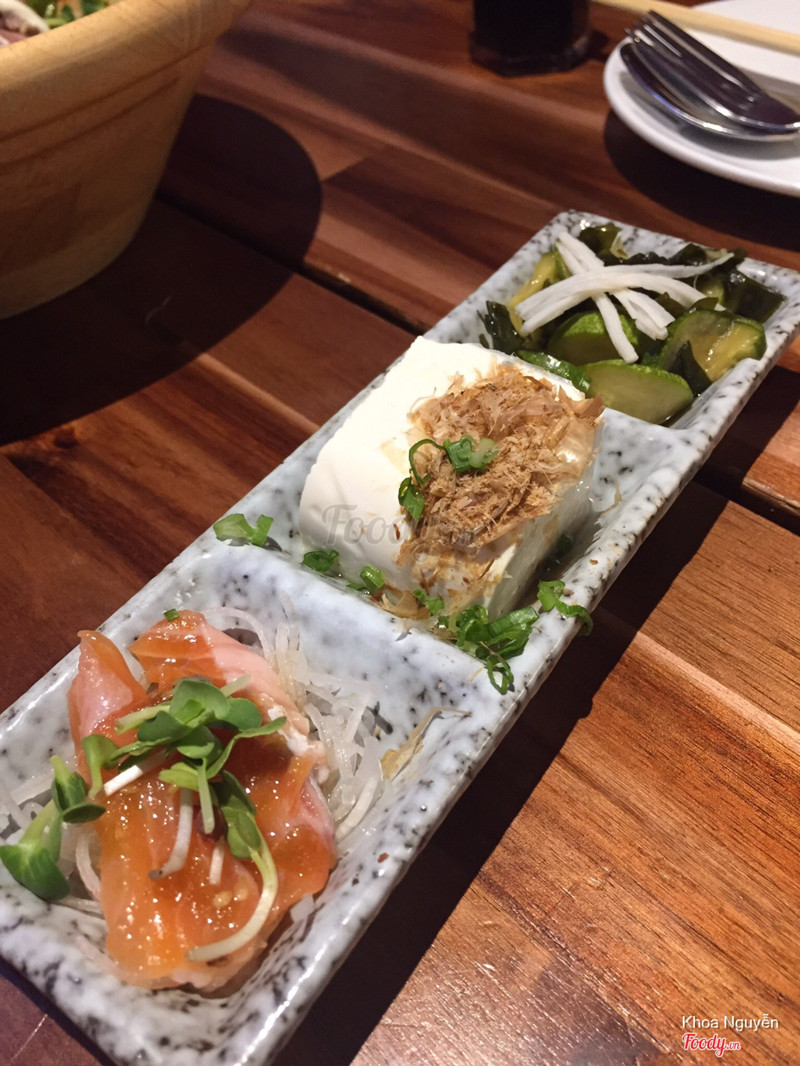 7.8Gourmet Yatai - Ẩm Thực Nhật - Saigon CentreĐi ăn trưa với khách ở đây, quán này nằm lọt trong khu ẩm thực nhật oedo alley ở lầu 3 takashimaya. Vừa đi từ cổng oedo vào là quán nằm ngay bên tay phải, đối diện với tamoya udon và sát kế boteiyu. Không gian có phần hơi thiếu sáng, có ghế gỗ ngồi hoặc ghế nệm, view kiểu nhật, ngồi quây quần ấm cúng. Menu quán không nhiều món, đặt to ngay trên quầy order và chế biến. Quán chuyên về các sét cơm kiểu nhật, một sét hoàn chỉnh với salad, canh rong biển, trứng hấp hoặc chén cơm trắng. Nhóm mình goi cơm cá hồi, cơm heo chiên xù w trứng, miến xào thập cẩm. Ấn tượng nhất là cơm cá hồi với trứng cá nhai sực sực thú vị, miến xào ăn nóng mới ngon, nguội xíu ăn hơi bở, heo chiên xù hơi giòn quá nên khó ăn. Giá cũng hơi cao xíu nhưng chất lượng cả khu này đều khá ổn nên mỗi khi thèm món nhật là nghĩ ngay đến chỗ này, nhiều sự lựa chọn và ăn ngon. ...Xem thêm