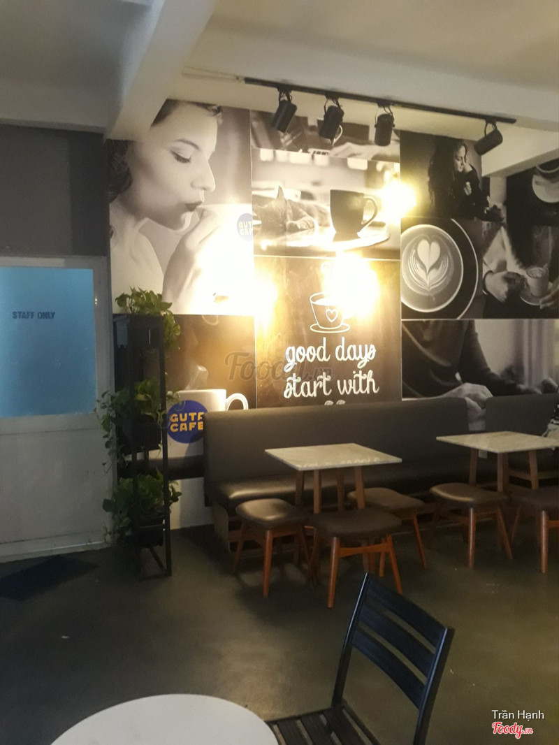 7.4GUTA CAFE - Lý Chính ThắngGuta cafe chi nhánh lý chính thắng. mình hẹn bạn coi phim buổi trưa mà lỡ chân đi quá sớm nên ghé đây ngồi đợi bạn. Chi nhánh guta cách cinebox lý chính thắng tầm 300m, từ cinebox chạy lên 300m thì quán nằm bên phải. Khác với 1 số guta khác là chi nhánh này có chỗ ngồi lại, tương đối rộng, dù không gian cũng không decor gì, nhìn sơ có cảm giác cũ và hơi dơ, ổ điện cũng hơi ít. Mình order chanh đá xay và đang đói nên lấy thêm cái bánh giò, menu ngoài mấy món lẻ lẻ thì còn có combo 1 mặn 1 nước cũng được, giá tiết kiệm được chút ít. Chanh đá xay thì cơ bản òi, không thể dở được, hơi chua chút thui. Bánh giò thì lấy trong quầy hấp ra nên còn nóng nhưng chắc do để lâu nên bột hơi bở 1 chút. nhân viên cũng dễ chịu. ...Xem thêm
