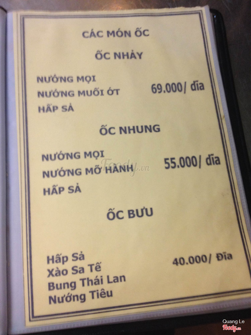 7.0Cũng tạm đượcMình đến đây ăn được một lần và đến giờ chưa ghé lại vì so với những quán ốc mà mình biết thì quán này chỉ ở mức trung bình Không gian quán cũng khá rộng rãi, kiểu quán ăn bình dân, mình thấy có bán tôm cua gì nữa nhưng bữa đó chỉ ăn ốc thôi nên không biết mấy món kia ra sao :)) Nghêu Thái ở đây ăn khá ổn, nước nghêu thơm Ốc nhum nướng muối ớt ăn không thấm vị lắm Chem chép xào tỏi ngon, rất nhiều tỏi phi ăn thơm mà nêm nếm cũng ngon nữa, sau đó nhà mình gọi thêm 1 món tỏi xào tép mỡ ăn khá lạ :)) cái này nhấm bia là khỏi chê luôn Càng ghẹ rang muối ăn ngon, càng ghẹ tươi, nhưng gia vị bên ngoài hơi ít Sò điệp nướng trứng cút ăn bình thường, hơi khô vì nướng quá tay, lại không có mỡ hành đậu phộng gì nên ăn chán lắm Những món ốc ăn kèm 2 loại nước chấm là nước mắm với muối tiêu chanh thôi, không có gì đặc sắc Giá cả trung bình 40-50k Để ăn ốc giá này hoặc rẻ hơn thì mình còn vô vàn lựa chọn nên chắc không có dịp ghé lại quán lần nữa rồi :)) ...Xem thêm