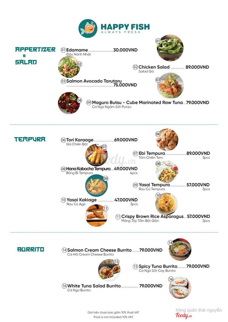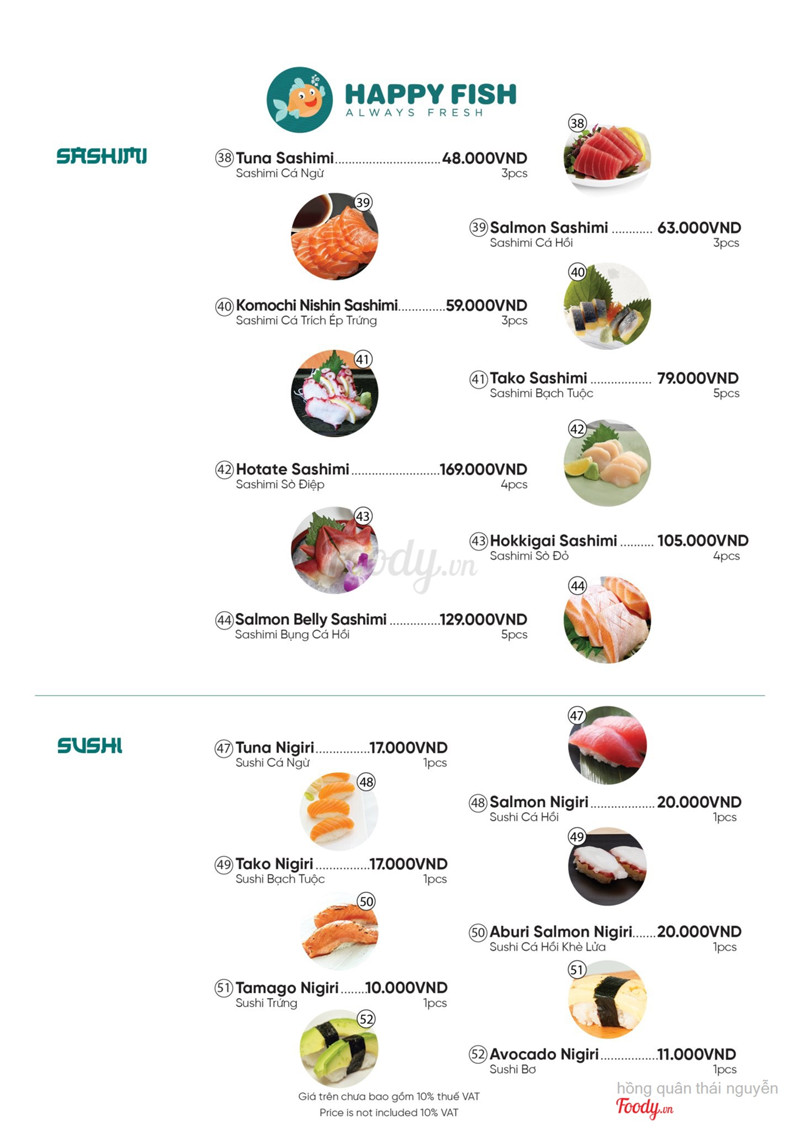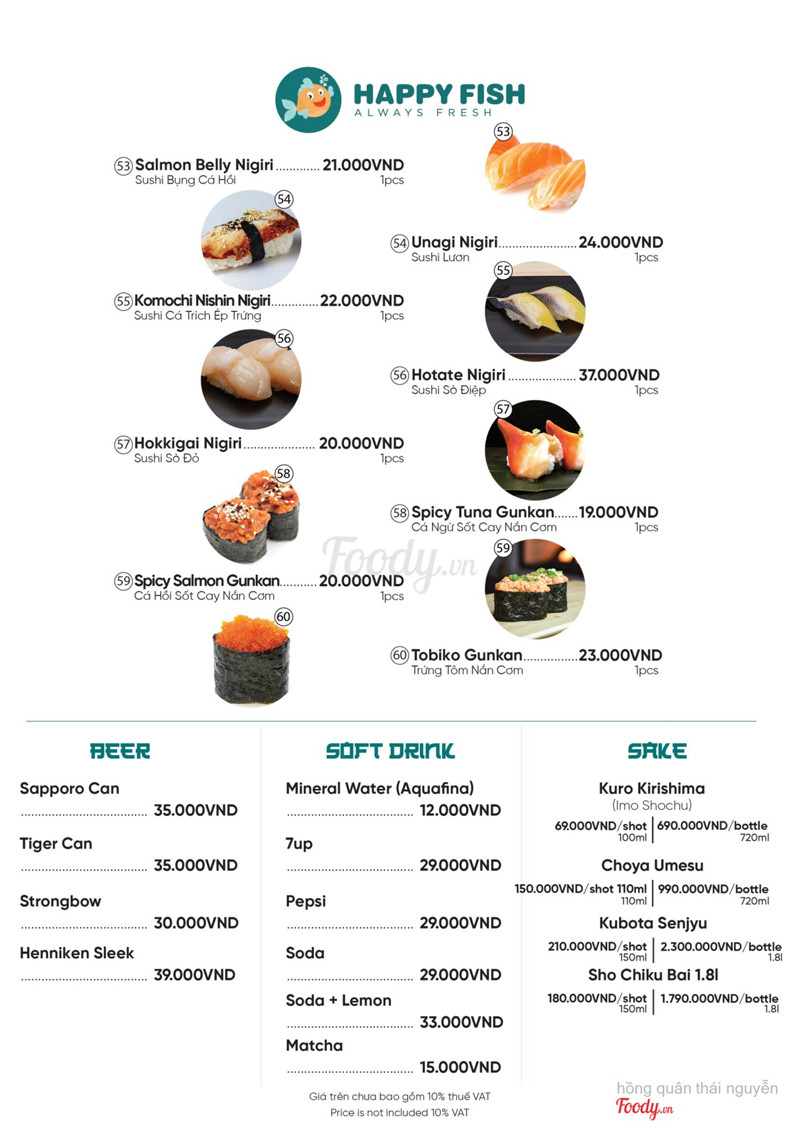 10Happy Fish - Ẩm Thực NhậtĐây là lần thứ 2 mình đặt chân tới quán rồi .Sushi ở đây khá tươi và ngon, có nhiều món lạ hấp dẫn. Mình thích nhất món bơ cá hồi béo béo ngậy ngậy khá ngon,, cơm cuộn cũng thich nữa :) không gian quan nhỏ nhắn xinh xắn chụp hình check in khá đẹp,,nhân viên thì dễ thương, giá cả vừa túi tiền. mình sẽ quay trở lại nhiều lần nữa. hihi <3 ...Xem thêm