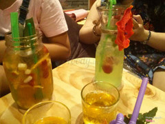 ly này là sunshine, phần lớn là nước cam thì phải, có thạch trái cây nữa, 1 ly uống no luôn