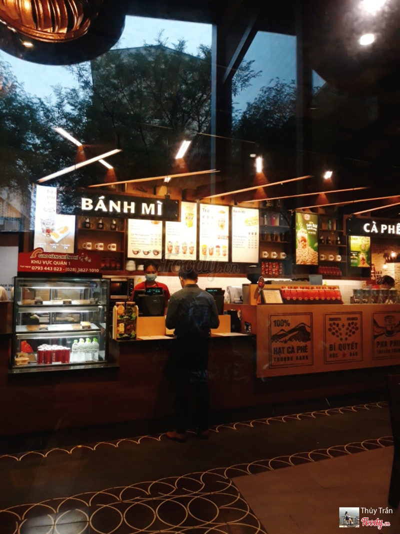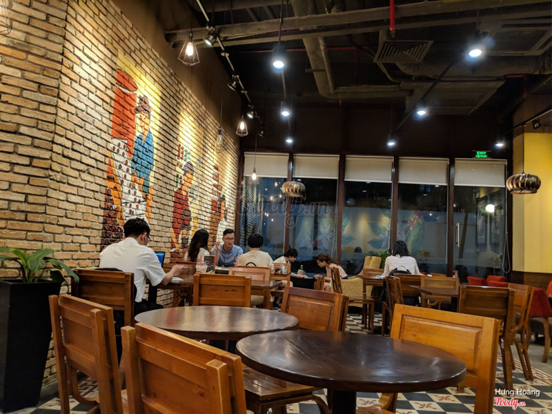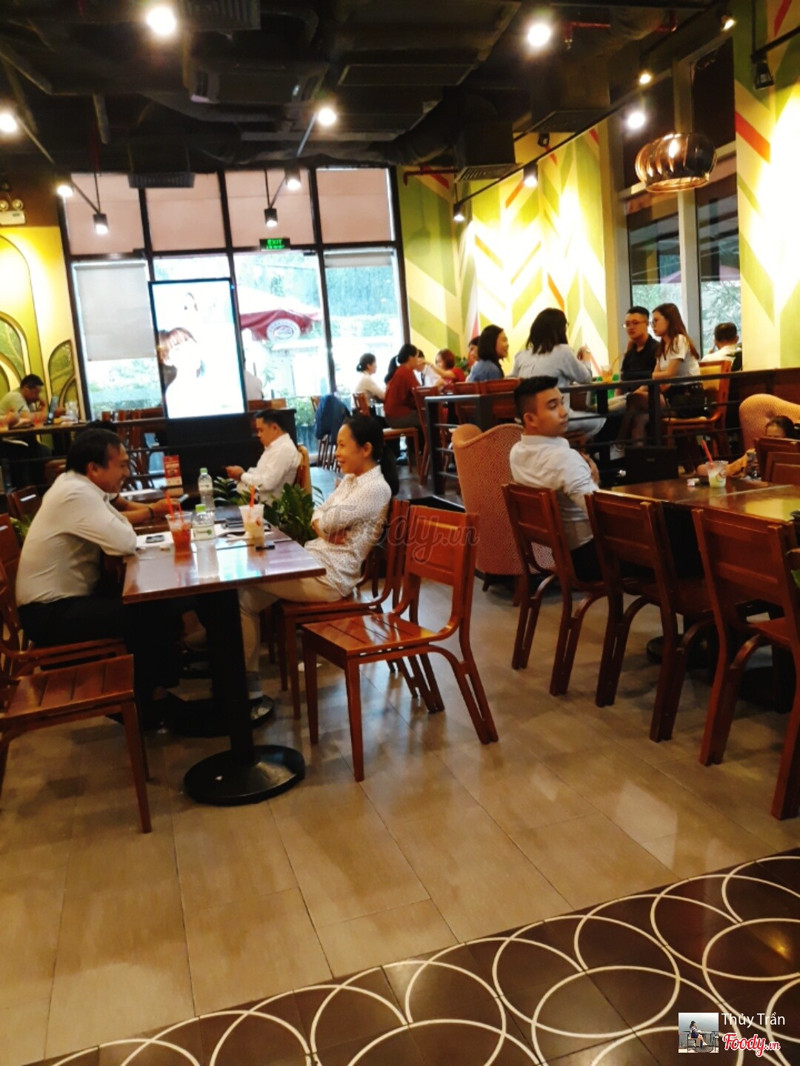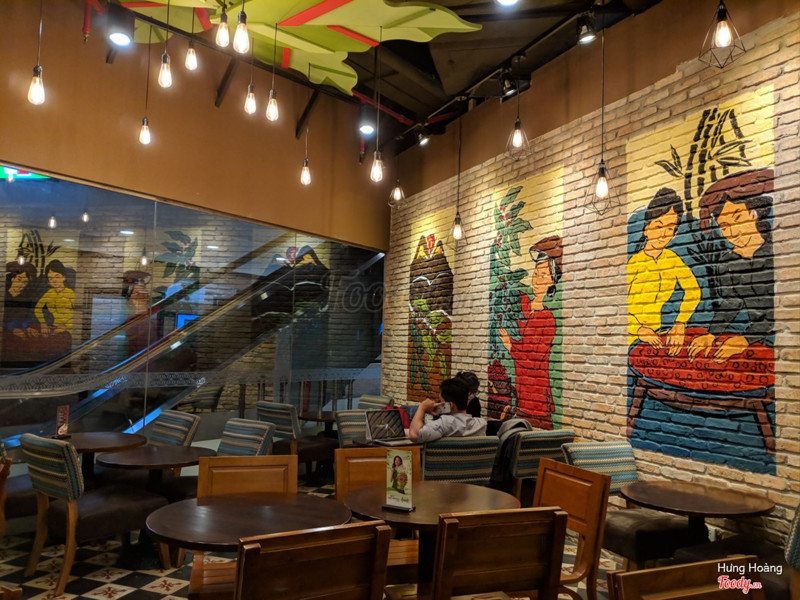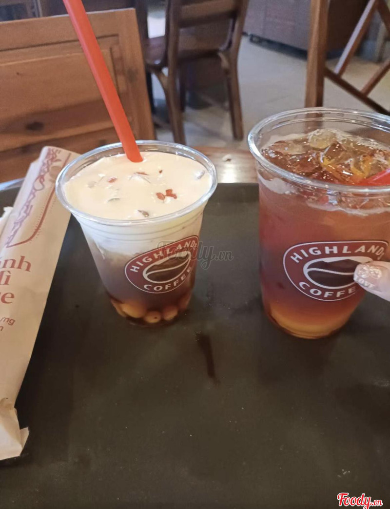 8.2Highlands Coffee - Saigon TradeQuán nằm ở tầng trệt của toà nhà văn phòng nên mình ghé buổi trưa là siêu đông khách luôn. Quán có không gian ngoài trời buổi trưa khá nắng nóng, có 1 số khách ngồi hút thuốc, không gian trong nhà rất rộng, nhiều bàn ghế, khách đến ăn cơm và nghỉ trưa. Mình uống trà sưn vàng, quán đang có khuyến mãi free up size nên mua size M được up lên size L giá 55k. Trà sen vàng là món yêu thích của mình ở quán, lớp kem béo và trà thanh mát, sen bùi, thạch củ năng cũng rất ngon. ...Xem thêm