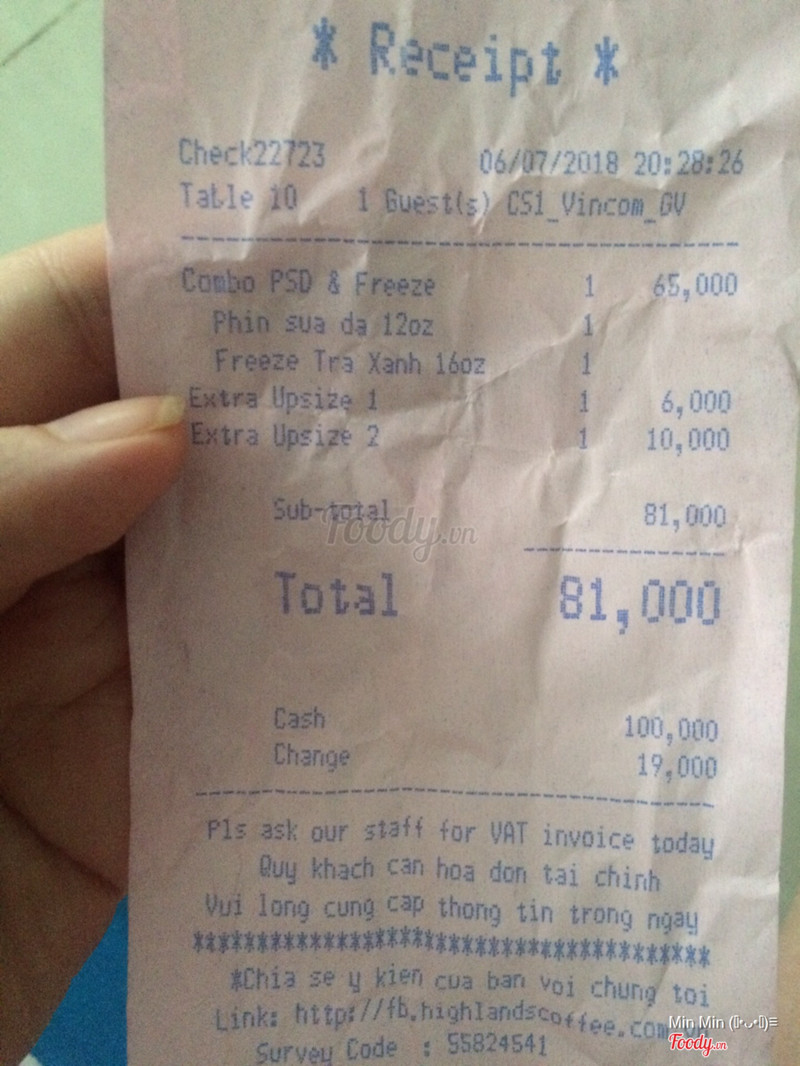 9.0TạmMình thì có thưởng thức nhiều lần về highlands rồi . Nhưng đợt này mình uống ở chi nhánh lúc đó có chương trình khuyến mãi mua 2 ly trở lên sẽ miễn phí upsize lớn . Mình và bạn bè order và viết rõ trong giấy là 3 ly ... nhưng phục vụ chỉ tính có 2 ly và tụi mình ko để ý vì thật ra nắm ko rõ giá lắm và quên kiểm tra bill ( này là lỗi của mình ) . Vậy là lúc nhận nước thấy chỉ có 2 ly thôi ... Ly nước thứ 3 của bọn mình uống với giá cũ . Mình báo lại với nhân viên rồi , cách giải quyết của nhân viên là nhận order lại và ko được upsize ... thật ra upsize chỉ tốn khoảng chừng 3k hay 6k gì đó thôi . Nói chung nước uống của highlands thì ok rồi nhưng mà nhân viên cần chu đáo và để ý hơn thôi . ...Xem thêm