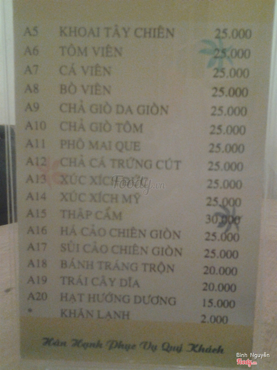 Ghi chú đặt bàn