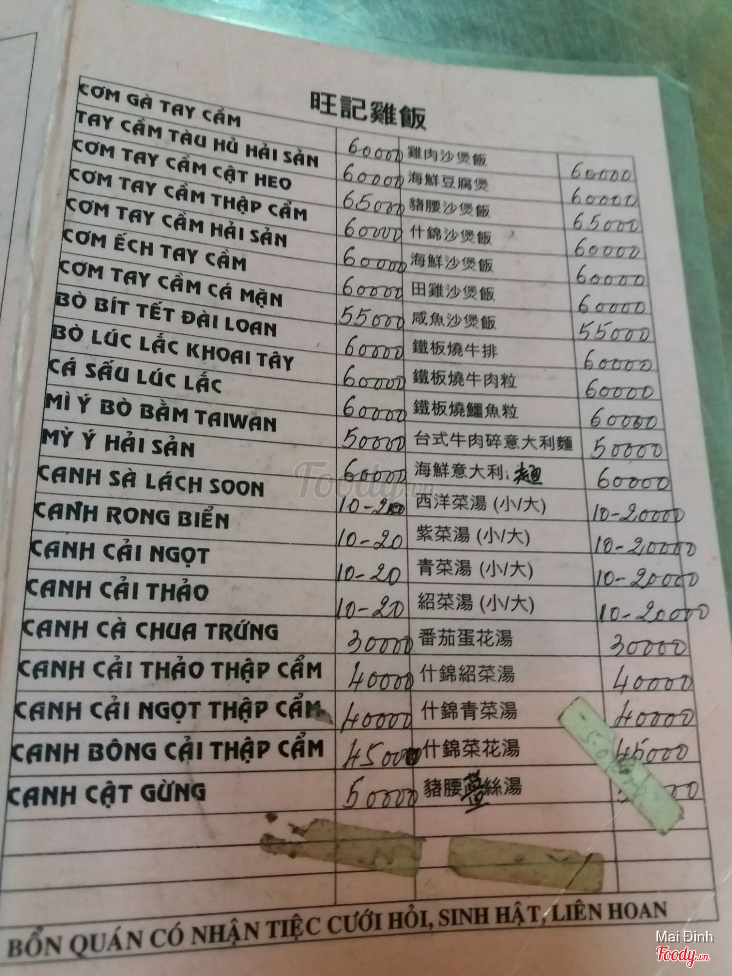 Ghi chú đặt bàn
