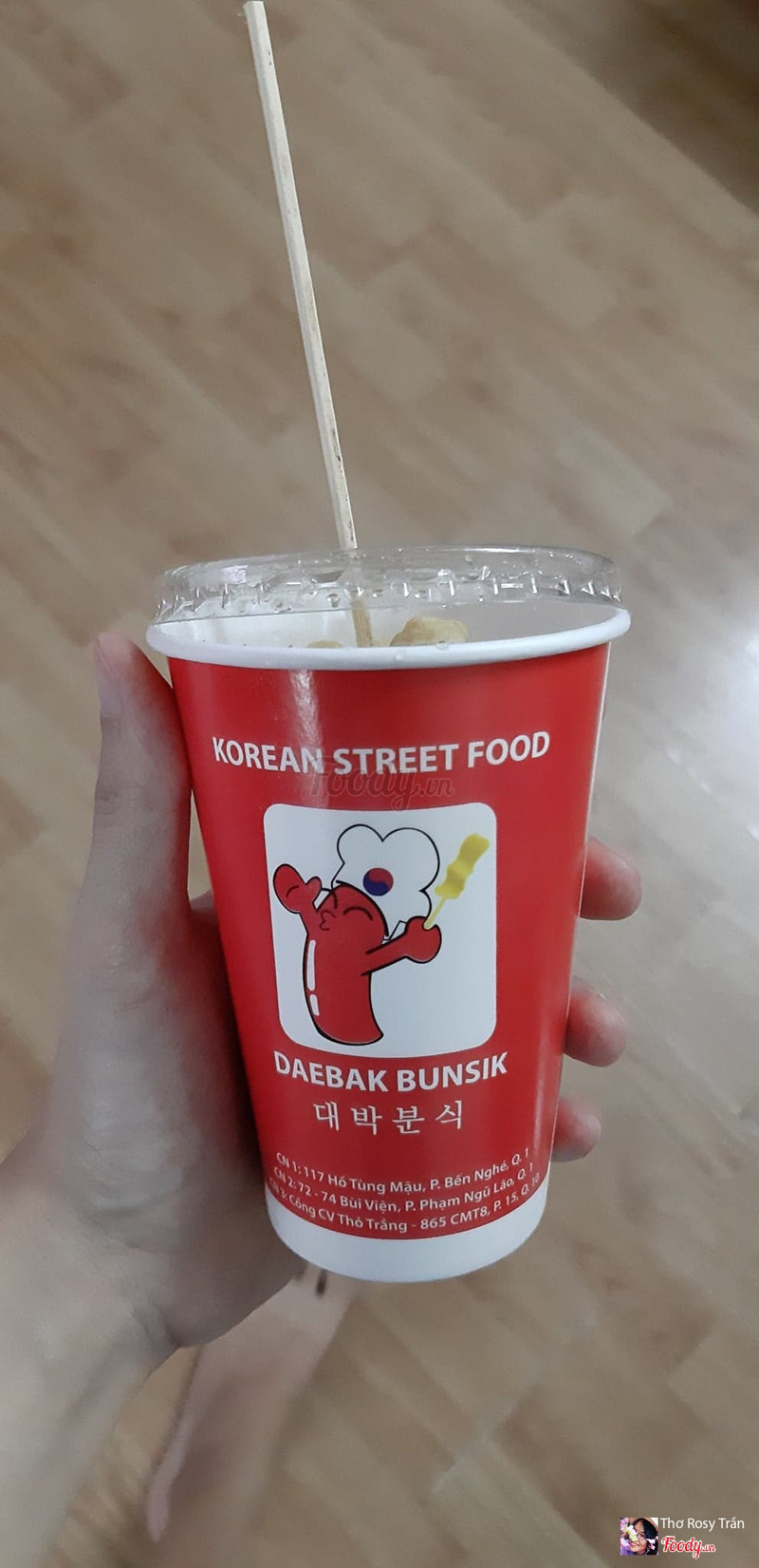 8.4Món ăn Hàn Quốc gần phố đi bộ ^^Thấy đơn vị ship xếp hàng rần rần nên cũng tò mò xếp ăn thử. -Tokbokki : sốt đậm đà bánh gạo thấm vị, tham ăn cay bỏ sốt ớt nhiều nên uống nước hít hà@@ giá ly 25k -Chả cá Odeng: mình trước giờ ghét ăn cá mà sao ăn món này ghiền lun.2 đứa mỗi đưa chơi 2 cây mới đã (kết món này nhất) 1 cây 20k -Xotok bánh gạo xúc xích chiên nhìn đơn giản nhưng kết hợp sốt chua ngọt của Hàn ăn cảm thấy béo bùi hay hay. 1 cây 25k Thấy có 5 món lận mà do no quá nên dịp sau ghé thử típ. Mà dịch quá cũng ngại ra đường,mai mốt cũng nhờ now ship cho tiện ...Xem thêm
