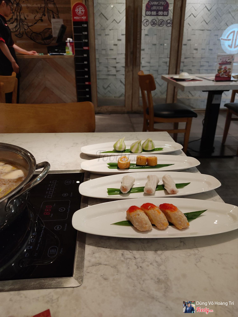 10Lẩu ngon - nước chấm ngon - phù hợp khẩu vị người ViệtMình dùng 2 loại lẩu là tomyum và riêu cua. Nước lẩu thơm nhưng hơi nhạt nhưng sau khi ăn cỡ 15p thì nước lẩu vừa miệng. Các món nhúng tươi ngon. Đặc biệt là mực ống. Bình thường mình đi mấy chổ khác phần mực ống lúc nào cũng không tươi. Riêng ở đây mực dày và tươi lắm. Có 7 loại nước chấm khác nhau nhưng ngon và hợp khẩu vị***lắm. Ngon hơn Manwan. Lá sách, tổ ong, khăn lông ăn giòn không hôi. Các loại chả cá ngon. Chỉ có kem thì bình thường và có 3 mùi thôi. Trái cây gồm dưa hấu, thơm, ổi và 1 loại bánh ngọt. Nói chung mình ấn tượng rất tốt với Holy. Hôm nay mình đen ăn lúc 6g30 tối và có nghe chú bảo vệ nói mình là khách đầu tiên của nguyên ngày. Chú rất thân thiện vui vẻ. Các bạn đến ăn thử nha. Nếu chọn giữa Manwan và Holy thì mình nghiêng về Holy rồi. 1 giá vé 299k + buffet nước kem bánh trái cây 39k chưa thuê nhé. Buffet nước có thể chọn hay ko tuỳ các bạn. ...Xem thêm
