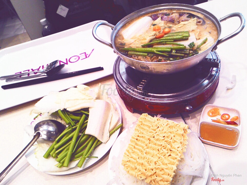 7.2Hot Box - Korea Foods - AEON MallLượn lượn lầu 3 lại không thể khước từ mùi thơm từ những nồi lẩu nên hai đứa nhào vô ăn luôn. Hai đứa mình oder lẩu kim chi loại trung nên được tặng thêm 2 ly trà đá. Nước lẩu chua chua cay cay ngon lắm, đĩa thức ăn kèm cũng nhiều nữa. Mình thấy với giá 78k mà chất lượng như vậy là oki lắm rồi. Không thể đòi hỏi hơn được đâu. Nói chung là đi aeon mall muốn ăn vừa no vừa rẻ thì lầu 3 là sự lựa chọn tốt nhất đấy :3 ...Xem thêm