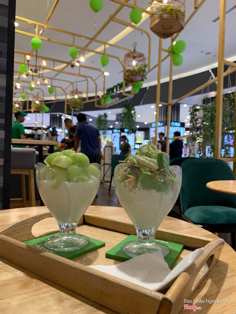 8.0Bingsu dưa lưới mát lạnhhhhKhông gian tươi mát bởi màu xanh lá cây ^^ , bàn ghế đẹp, nhưng ko dc rộng, chỉ có 2 cái bàn 4 chỗ và 1 cái bàn dài ghế cao cao ý. Lúc mình lại ăn đã full chỗ, còn mỗi 1 bàn. * nvien : có 2 chị nvien dthun, k có điểm cộng cũng k có điểm trừ. * bingsu dưa lưới: 130k hay 150k j đó mình quên r, có sốt dưa lưới ngọt ngọt đổ lên ngon lắm, dưa lưới ăn mát, dưa giòn ăn đã lắm, bingsu sữa bào nha, nhưg k quá ngọt. 2ng ăn no luôn * bất tiện ở chỗ bình nước ko để bên ngoài cho khách rót mà lại để bên trong quầy, ý là khi uống nước xong mà muốn uống thêm thì phải phiền tới bạn nvien rót hộ. ...Xem thêm