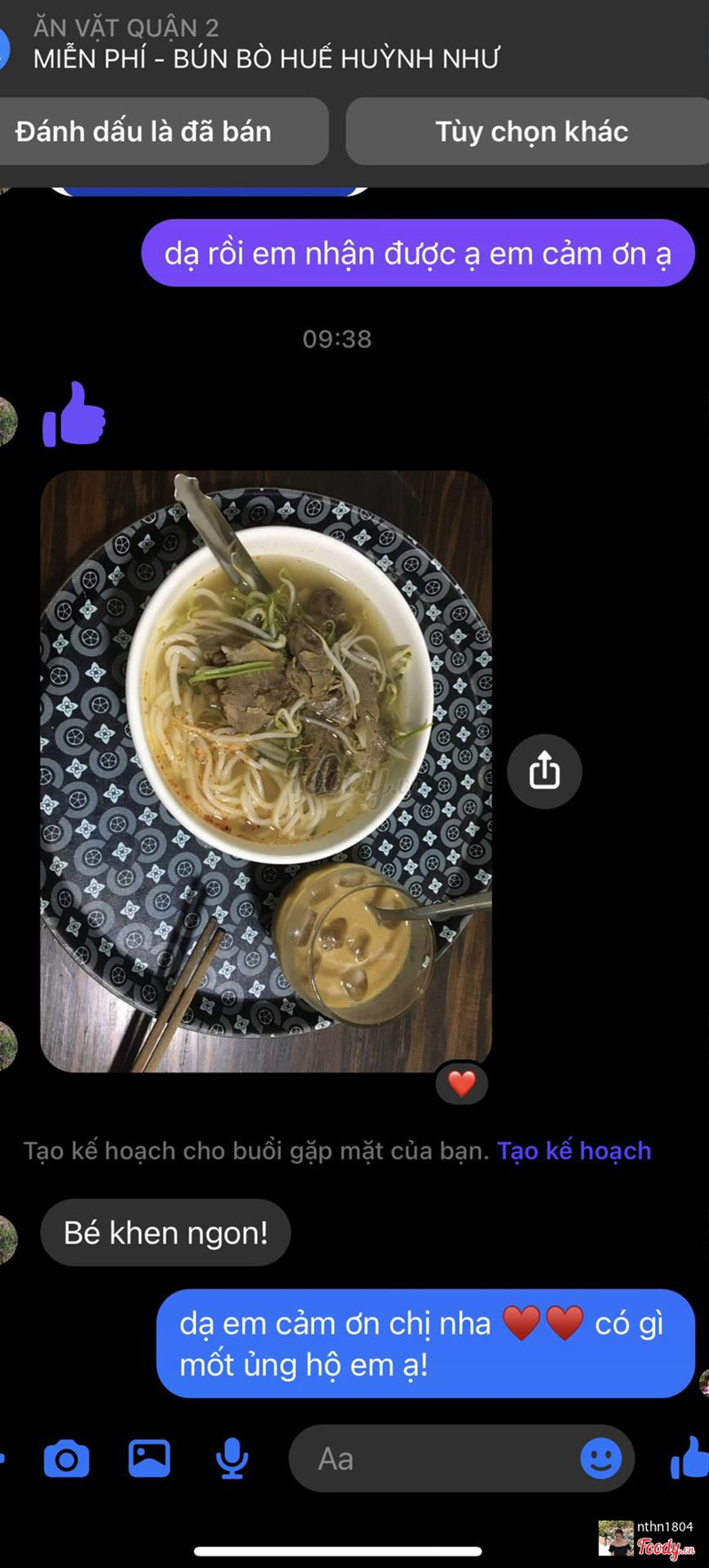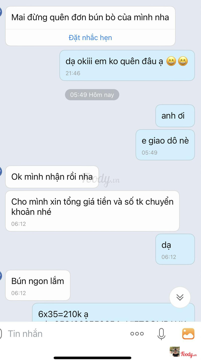 10BÚN BÒ HUỲNH NHƯ- THÂN VĂN NHIẾPBún bò nhà em, 1 phần Bún bò em sẽ để riêng bún, rau, hành, sate, nước riêng đều để riêng hết ạ! Nên mọi ngừoi an tâm đảm bảo chất lượng, hợp vệ sinh, giá cả hợp túi tiền. Khách ăn phần nào thì trụng rau riêng, bún riêng và nước riêng. Mùa dịch em ko thể trụng trước cho khách vì đi giao ngoài đường rất nhiều vi khuẩn và nguy hiểm. Nên khách cứ ăn phần nào hâm phần đó và phần nào chưa ăn thì bỏ vào tủ lạnh nha! Quán nhà em nấu nước lèo nóng hổi vừa xong là lên đơn giao cho khách luôn nên khách yên tâm cứ để tủ lạnh ăn được vài ngày luôn ạ! ...Xem thêm