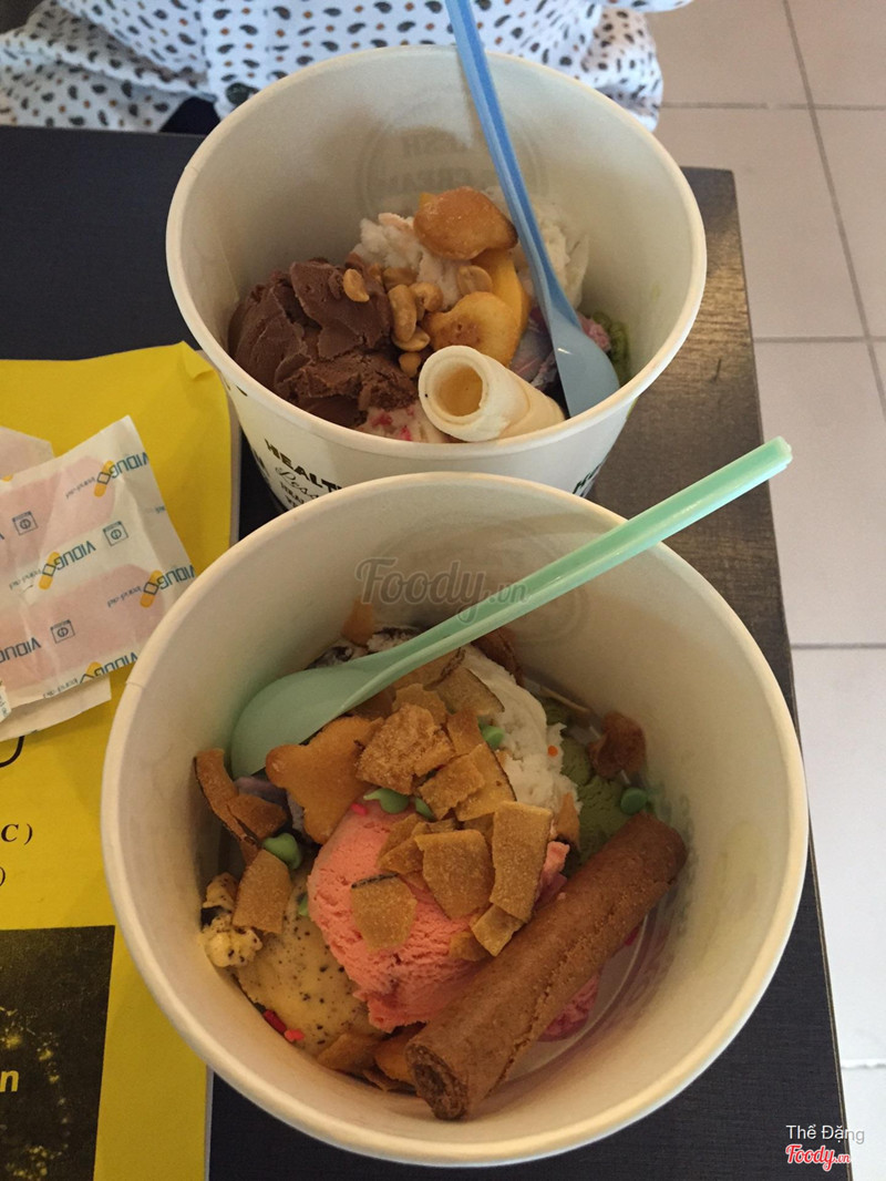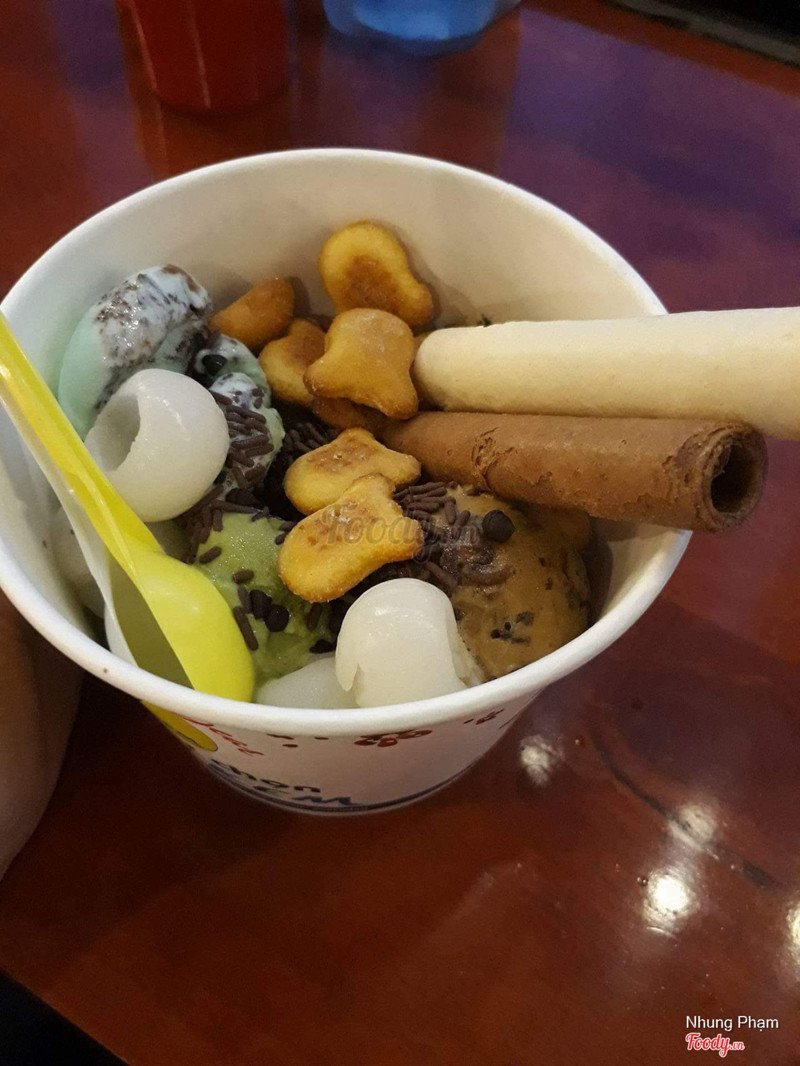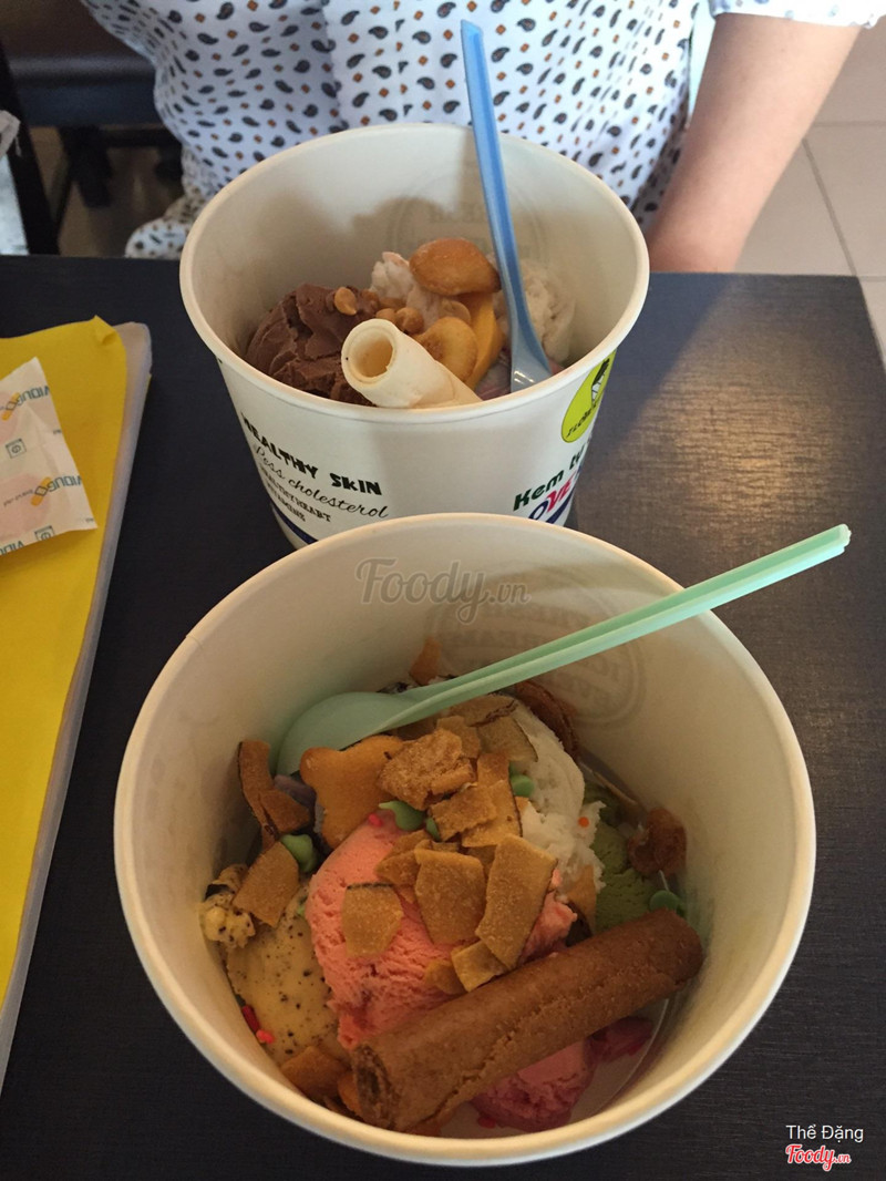 6.0TốtMình đi quán này cũng lâu rồi, và chưa có dịp ghé lại, quán kiểu kem tự chọn rồi cân tính tiền, motip cũ thôi, không có gì lạ. Có rất nhiều vị để lựa chọn, mình nhớ là 12 vị thì phải, có thêm syrup, topping nữa, cái nào cũng ngon cả, toping có cả nho đen không hạt, mashmarlow, mứt dâu, chocochip, ..... và cái mình hài lòng nhất là syrup, quán sử dụng syrup cô đặc, choco Hershey nên ngon hơn các quán khác dùng si rô. Không gian bình thường, không có gì đặc biệt, được cái ngồi thoải mái, bàn ghế nhiều loại. Cái khuyết điểm mình gặp là cái ly đựng không lớn không nhỏ, mình không ước lượng được số kem, toping đã chọn, kết quả là khi tính tiền mắt chữ o mồm chữ a, chắc đây cũng là chiêu của quán ^^ ...Xem thêm