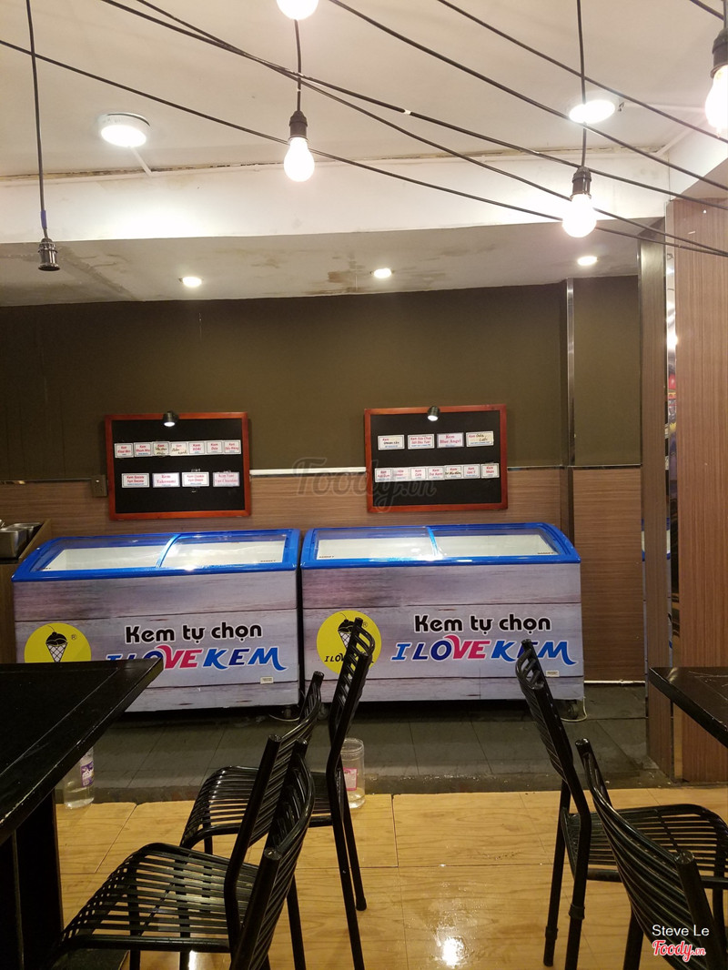 6.8I Love Kem - Lũy Bán BíchMình từng ăn ở chi nhánh i love kem ở d2 bình thạnh và khá hài lòng về chất lượng kem ở đây nên khi có dịp qua tân phú với bạn thì mình cùng bạn mình ghé vào chi nhánh này . Không gian nhỏ nhắn , dễ thương . Đi buổi trưa nên quán khá vắng và nóng . Không có khách nên nhân viên không bật máy lạnh . Ngồi đợi máy lạnh mát lên cũng hơi lâu . Kem có nhiều vị , nhiều mùi . Topping cũng nhiều nốt . Kem ổn , không quá ngon nhưng cũng không dở . Giá cả rẻ so với các thương hiệu khác . ...View more