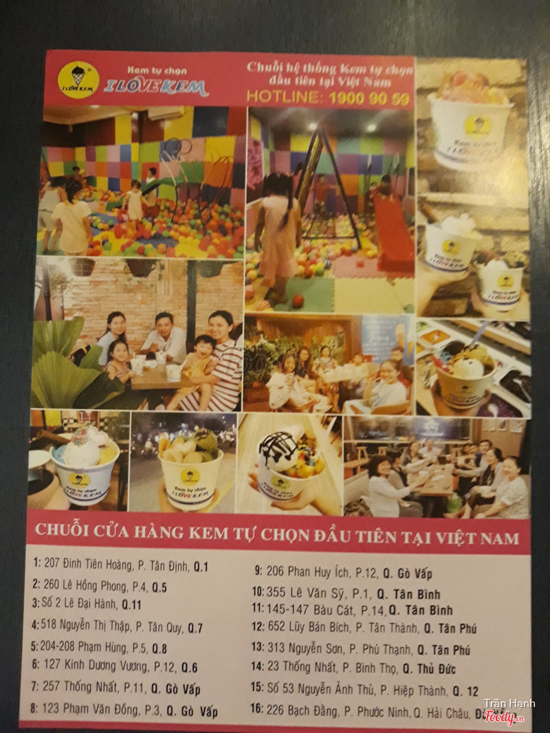 8.4I Love Kem - Lũy Bán BíchĐi với bạn ăn kem ở đây, khá gần nhà bạn mình ở đường Vườn- lài-, chi nhánh i love kem ở đây mình thấy cũng khá rộng rãi dù chỉ có 1 tầng trệt thui. Tiệm không gian cũng sáng sủa, tông màu trên tường là đen với tranh vẽ nhiều màu sắc. Format ăn ở đây thì cũng giống như các chi nhánh i love kem khác là có các thùng kem nhiều vị, quầy topping nhiều màu sắc, tự do lấy cup, kem, topping rùi bỏ lên cân điện tử, nhìn theo cân mà tính tiền, mình nhớ tầm 29k/100gr í, giá tính ra hơi nhỉnh xíu nhưng cũng ok, topping thì tùy loại có mấy loại mình thấy hơi cứng không biết do để lâu ngoài trời hay tự nhiên nó vậy, nên nếu cho con nít ăn thì nên thử trước nhé. Nhân viên cũng khá nice. ...View more