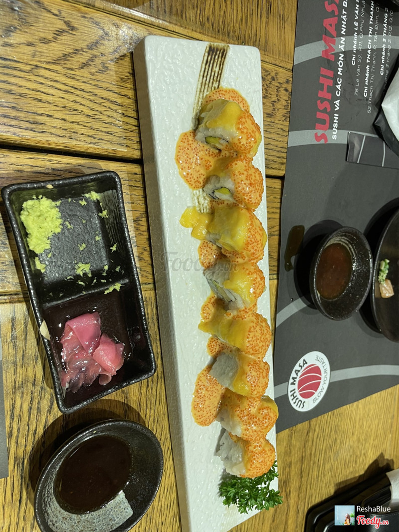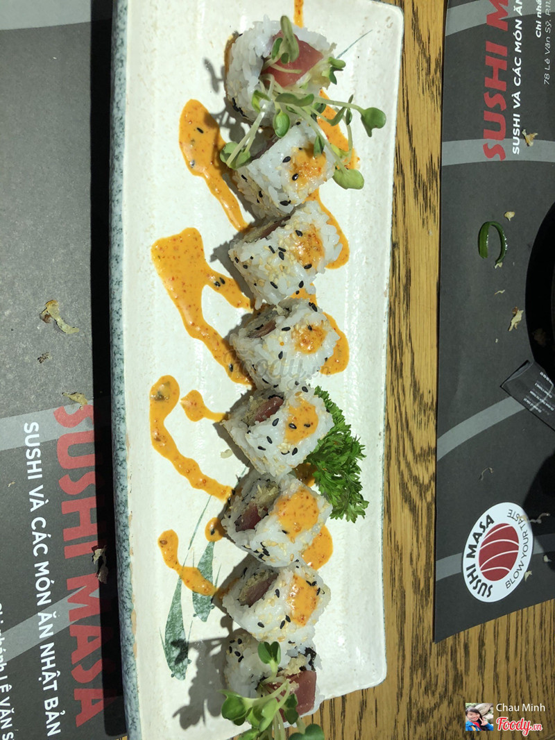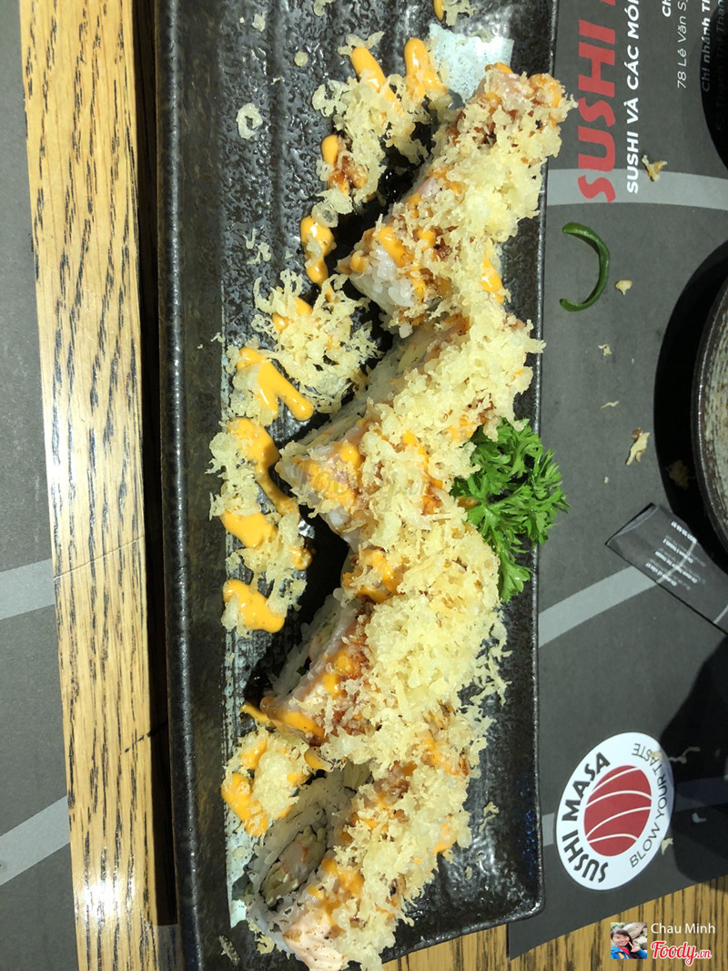 6.2Sushi Masa - 3 Tháng 2Mình đi 3 người gọi những món: + Cuộn lươn phomai: ăn không rõ vị lươn nhưng cảm nhận được vị phomai + Set sashimi: do hết cà ngừ nên đổi thành cá hồi, cá hồi ngon, bạch tuột không ngon + Cuộn chiên sốt cay: sốt ăn khá vừa miệng + Cuộn cá hồi phomai: vừa miệng hơn lươn và nhiều phomai + Mai cua sốt phomai: nhạt nhẽo, ăn hơi ngán, không ngon Gửi xe ngay bên hẻm gần quán, quán hơi nóng ...Xem thêm
