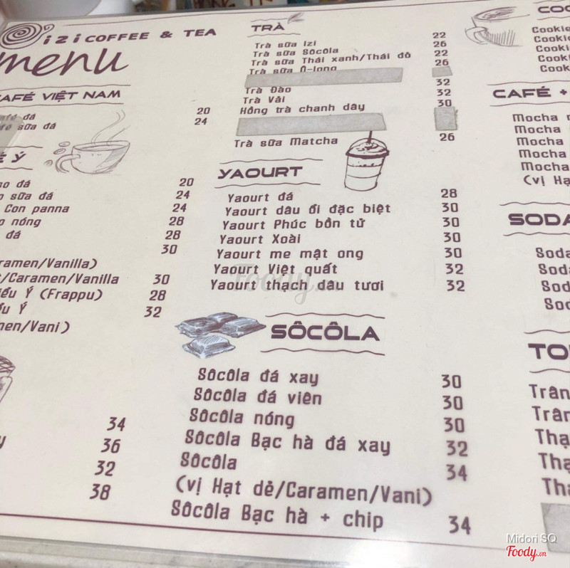 7.4Izi Coffee To GoQuán này quán ruột của nhỏ bạn mình vì gần trường nó . Tụi mình qua đây học nhóm. Không gian bên dưới đơn giản , không có máy lạnh. Quán có bán thêm đồ ăn nhẹ nữa. Mình gọi ly Trà sữa Izi (22k) và Socola đá viên (30k). Trà sữa của quán k ngon,mình thấy giống trà sữa nhà làm mà vị ngấy lắm,k hiểu sao bạn mình thích 😂 Ngược lại ,Socola đá viên rất ngon nha, đậm đà, nghiêng về vị đắng đắng mà lại vừa vặn thích lắm:3:3 Nhân viên thân thiện,nhiệt tình. Bán kiểu bình dân nên giá khá rẻ. ...Xem thêm