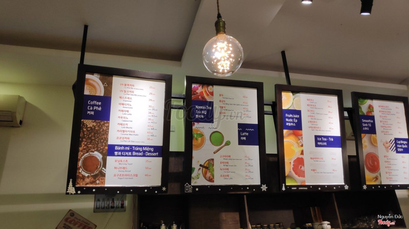 8.6Nơi dành cho tín đồ K-PopQuán nằm ngay mặt tiền đường, nên rất dễ tìm... Tuy nhiên, lúc mình đi thì quán không có bảo vệ giữ xe... Nên hơi lo xíu... :))) Quán có 3 tầng, tầng nào cũng được trang trí rất nhiều poster nhóm nhạc Kpop cùng với sách Tiếng Hàn. Không gian siêu rộng rãi, thoáng mát, máy lạnh thì chạy vù vù luôn. Tuy nhiền, tầng 3 dùng để dạy các lớp tiếng Hàn, guitar cơ bản... Do đó chỉ sử dụng được tầng 1 và 2 thôi... À, tầng 2 còn có chỗ nằm nghỉ, khá thoải mái nha... Món ăn thì chủ yếu là món Hàn khá đa dạng, đồ ăn thức uống đều có đủ cả, hương vị khá được, tốt trong tầm giá. Mình có gọi món Khoai Lang Latte khá nổi của quán. Vị rất lạ và ngon. Nếu có dịp các bạn nên thử. Quán còn có Coupon. Minh mua loại 500k nhưng giá trị là 550k và được khuyến mãi 1 khóa học tiếng Hàn nữa :))) Nếu các bạn hay ghé thì nên mua để được giảm giá nhé. ...Xem thêm