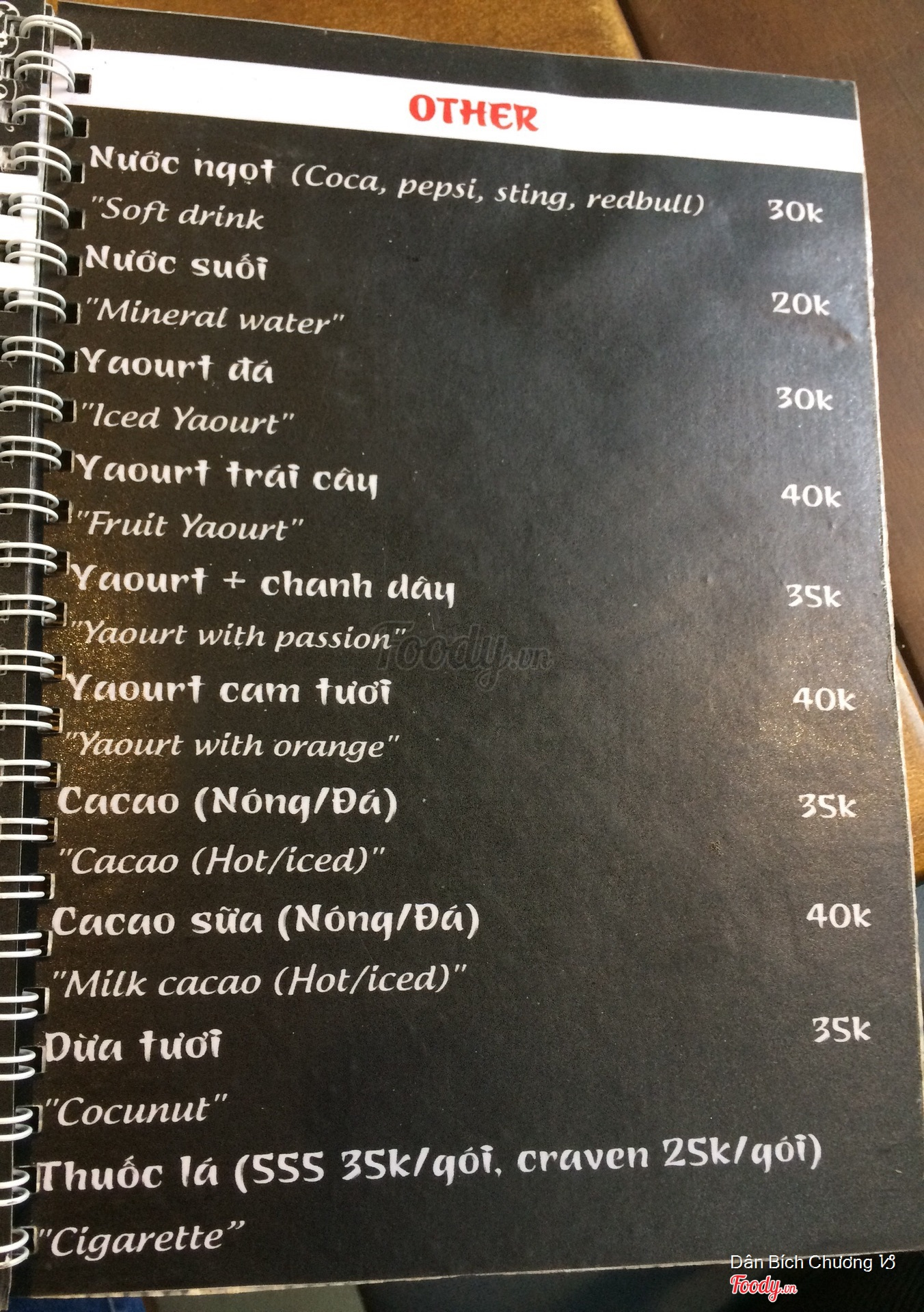 Ghi chú đặt bàn
