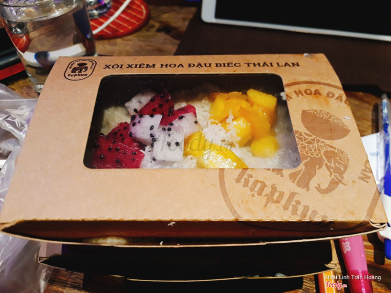 7.6Kạp Kun - Xôi Thái LanXôi nhiều lựa chọn style Thái Lan lạ lạ. Ăn ok. Mình mua hồi lúc khuyến mãi 1 tặng 1 nên tính ra rẻ rề, có 15k/ hộp thôi ( giờ bán lại giá 30k/ phần nhưng nếu đặt qua Now thì giảm 45% lận đó). Quán bán từ chiều đến tối. ...Xem thêm