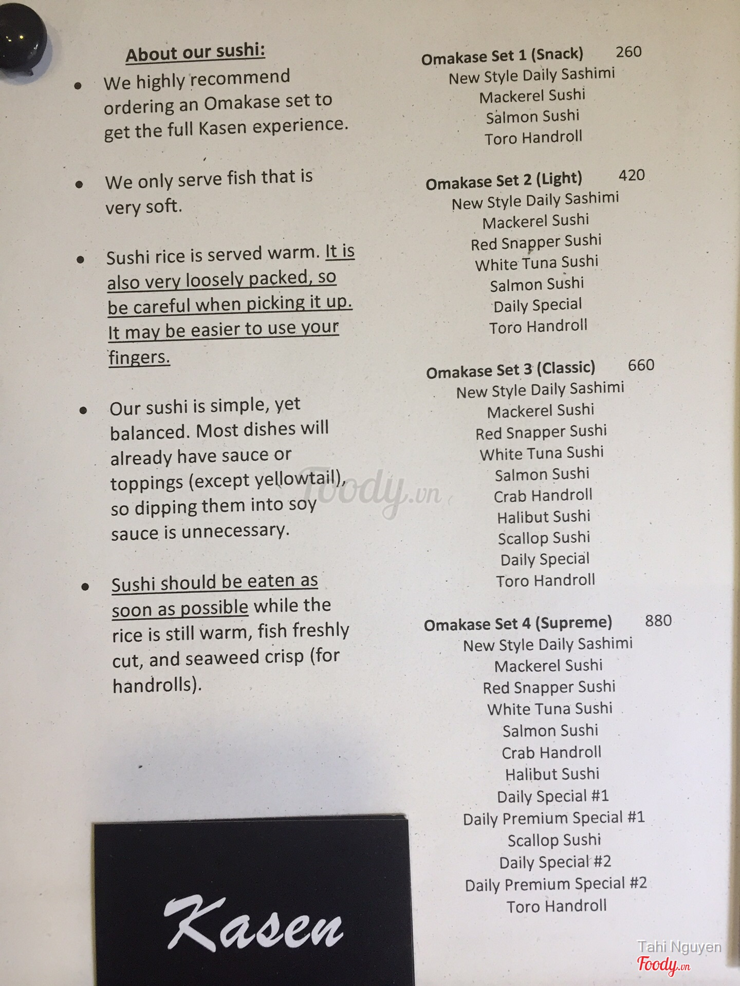 Menu Omakase
