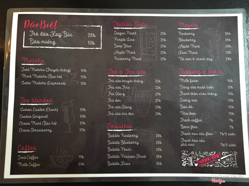 Quán mới mở hơn 1 tháng giờ mới có dịp được thử. Quán có 2 đường vô là từ Lê Văn Sỹ hoặc Ngô Thị Thu Minh , nhưng theo mình thì đ từ Lê Văn Sỹ dễ thấy hơn , đối với bạn nào không giỏi tìm đường thì có thể gọi trực tiếp bạn chủ quán để hỏi đường luôn . Không gian quán khá nhỏ nhưng do cách bố trí hợp lý nên nhìn vẫn rất thoải mái. vì là lần đầu đến quán nên mình cũng không biết món gì đặc biệt nên có nhờ 2 bạn chủ tư vấn, theo mình được biết thì quán có những món đặc biệt được pha theo công thức riêng bí mật không quán nào có , đặc biệt là trà đào hay ô long milkfoam , mình thì được gợi ý món Lemon cooler vì mình thích những món lạ. Đúng thật là vừa lạ vừa ngon nhưng mình không gợi ý món này cho mấy bạn hảo ngọt vì nó tương đối đắng vị vỏ chanh rát lạ miệng. Mình đến quán khá sớm nên lúc đó chưa có khách nhiều nên mình có ngồi nói chuyện cùng 2 bạn chủ quán, 2 bạn này là couple trẻ cực nhiệt tình và dễ thương và rất thích nói chuyện nói chung ấn tượng đầu tiên của mình về quán là rất rất tốt, nhất định sẽ quay lại thử hết những món độc quyền kia. ...Xem thêm