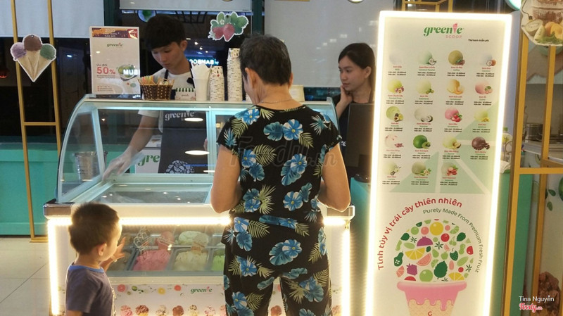 7.8Kem Greenie Scoop - Diamond PlazaMình biết tới brand này từ hồi quán mở ở Ngô Đứcc Kế cơ, đi chơi rồi vô tình thấy nên ghé luôn. Nằm trong khu food court ở lầu 4 của Diamond Plaza, chỉ là 1 chiếc xe kem nhỏ nhỏ xinh xinh thôi rất dễ thấy. Nhân viên cực kì vui vẻ, dễ thương, nhiệt tình khi mình muốn thử vị kem, mình thử rất nhiều vậy mà không hề khó chịu gì cả. Mình thích ăn vị dừa. Kem ở đây hoàn toàn từ trái cây tự nhiên, ăn là cảm nhận rõ luôn. Giá cả thì từ 25k trở lên cho 1 viên kem. Hơi cao nhưng phù hợp với chất lượng ...View more