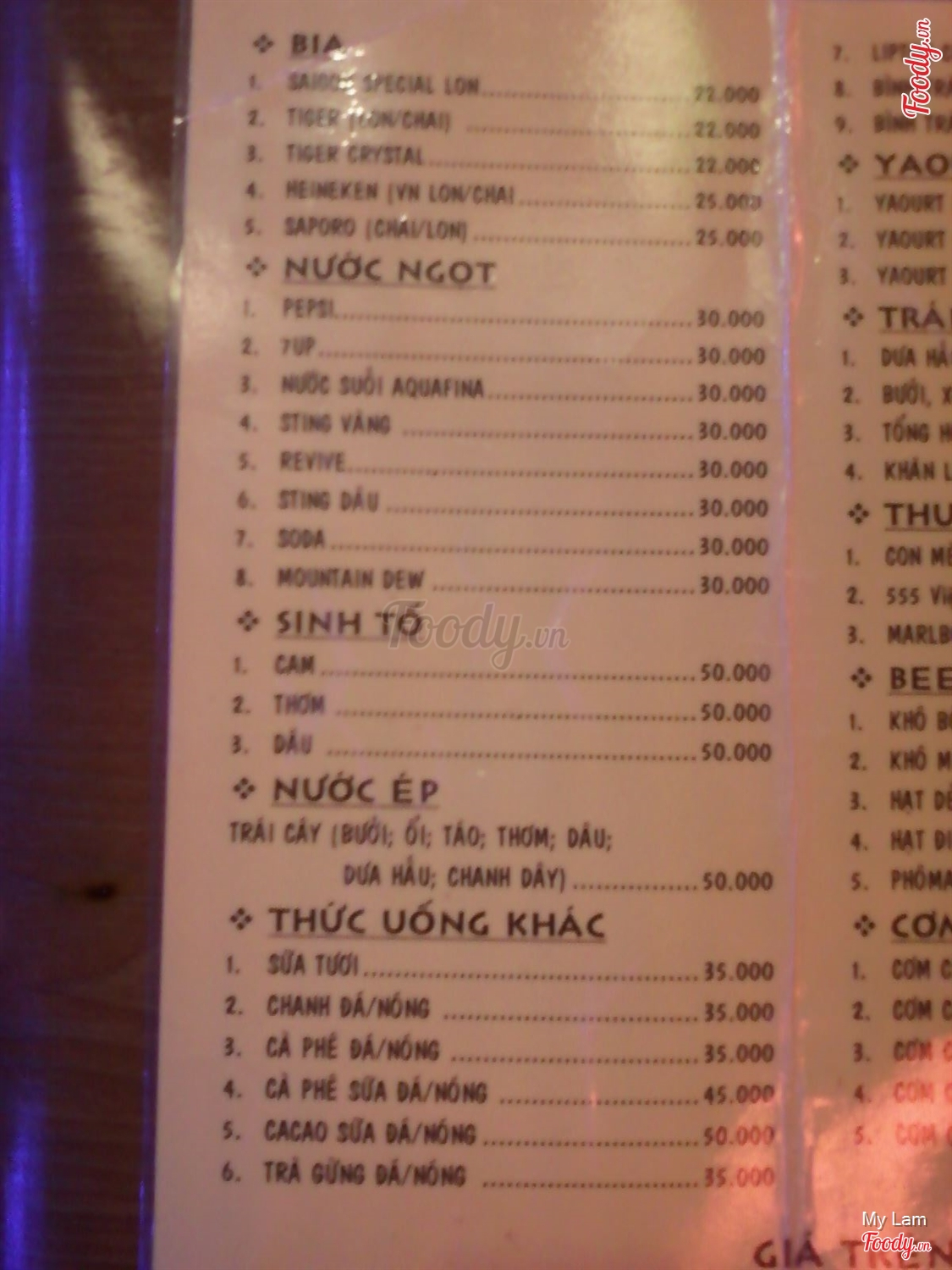 thực đơn