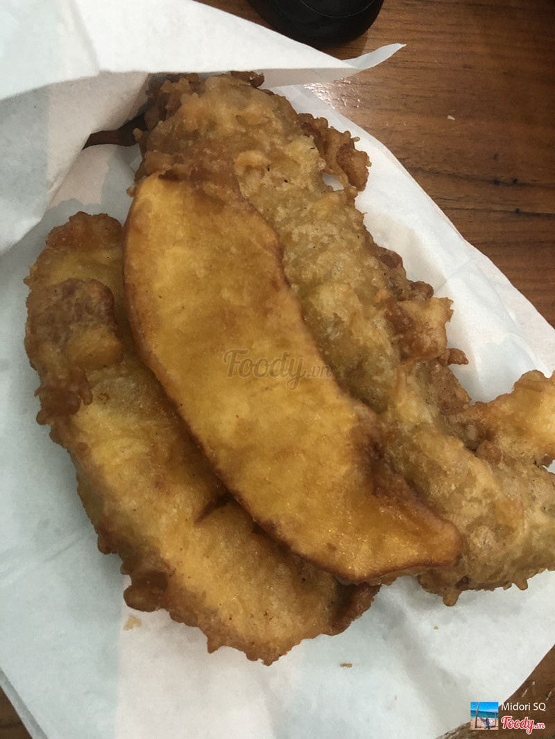 6.0Chuối chiênMình nghĩ quán chắc là kiểu vỉa hè vì gói khá sơ xài. Chuối chiên giòn nhưng hơi bị cứng so với bạn mình. Chiên hơi ngấy dầu. Giá rẻ 6k, miếng bự. ...Xem thêm