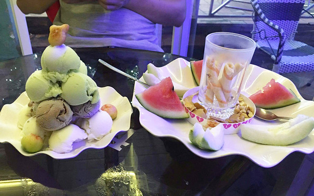 Minh Đỗ Còn nốt cái voucher kem ở đây, đi nốt luôn với nhỏ bạn. - Vị trí: xa trung tâm nhưng không khó kiếm do là mặt tiền - Không gian: trang trí khá, rộng, có 3 khu ngồi nhưng khu ngoài khi mưa thì muỗi lắm luôn - Giá cả: rẻ ha, 59k được combo 4 món - Phục vụ: vui vẻ, không có thái độ phân biệt khách voucher, ...