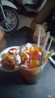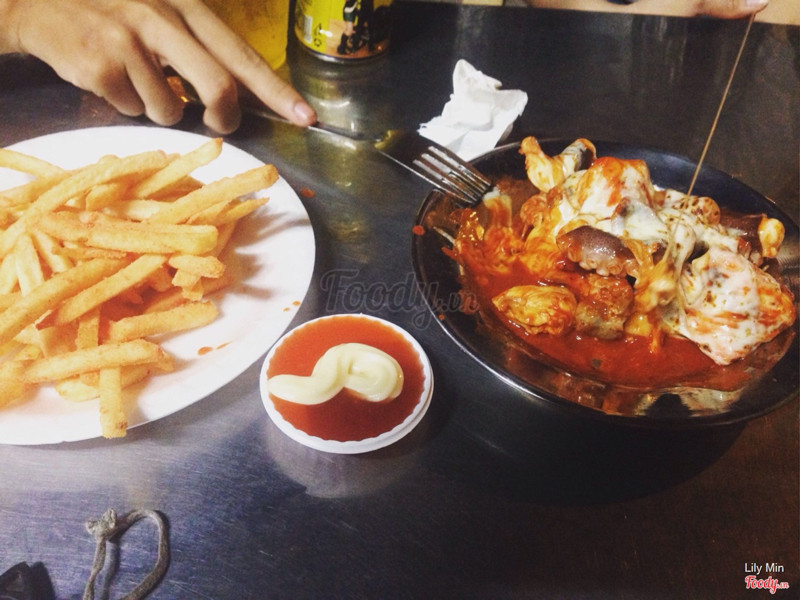7.0Ngon, sẽ quay lạiCũng dễ tìm, nhưng đường 1 chiều ai không kiên nhẫn cũng khó mà tìm ra lắm 😂😂. Mình gọi 2 phần thập cẩm phomai 70k 1 phần, gà viên lắc phomai (không nhớ giá, huhuu) , khoai tây lắc phomai 20k, 1 trà sữa thái 1L, thêm 1 chai nước ngọt. Tổng thiệt hại 200k mấy, bù lại chủ quán rất dễ thương, nhiệt tình. Gà cay không bở, bạch tuột không tanh lắm, gà lắc phomai không nhớ giá nhưng cũng được tầm 10 miếng nhỏ ấy. Riêng mình chỉ ưng mỗi trà sữa thái ở đây 😂, thơm thơm béo béo, không ngọt gắt. Dạo này, bị đuổi đường nên quán không để bảng nữa, nhiều người tới sẽ lầm là không bán 😢. Không gian thì cũng tạm ổn, vì ngồi lề đường và trong nhà. Nói chung là sẽ quay lại n lần khác 😋. ...Xem thêm
