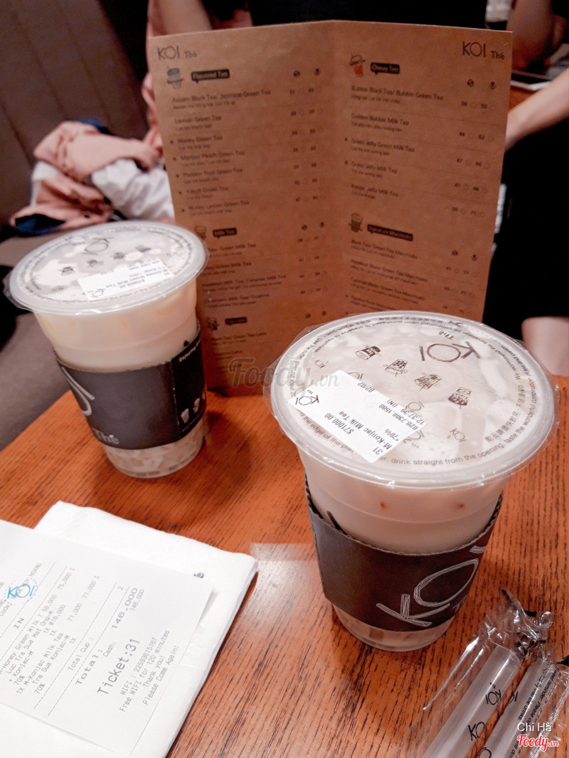 7.2Koi Thé Café - Vincom CenterĐồ uống khá ok. Mình đi hôm thứ 7 nên quán rất đông. Phải chờ 1 lúc mới vó chỗ ngồi. Thái độ nhân viên khá ổn. Mình gọi trân châu đên nhưng hết rồi nên thay bằng hạt gì ấy. Ăn cũng như trân châu, khá ngon. Giá hơi cao ...View more