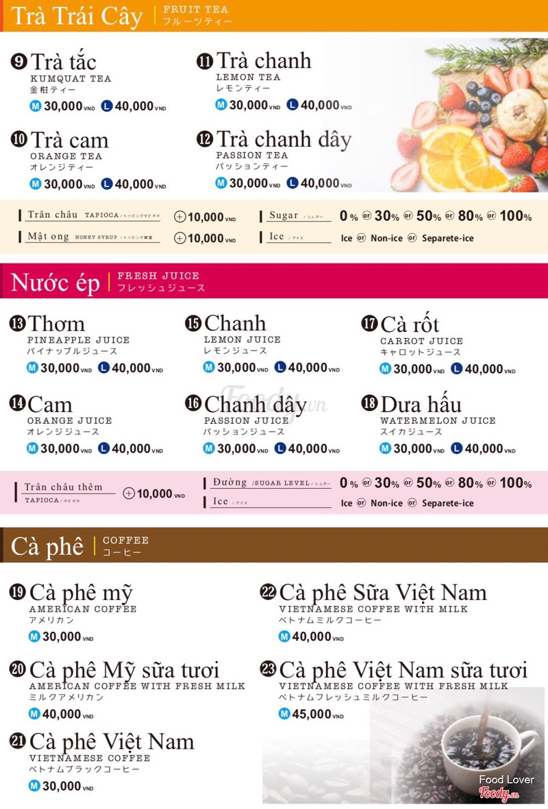 7.6Trà sữa Nhật Bản 🇯🇵Quán nằm trong khu phố Nhật. Không gian cũng khá nhỏ, chỉ có quầy và vài cái ghế thôi. Kiểu quầy mở nên khi nhân viên pha nước mình thấy rõ luôn, rất sạch sẽ. Thấy quán dùng nguyên liệu là loại sữa của Nhật chứ không phải sữa của*** Vì không gian quán hơi nhỏ mà đám mình đi 7 người lận nên tụi mình mua take away đi vòng vòng phố Nhật tham quan, chụp choẹt luôn. Mình gọi size M hết nha 🍉 Nước ép Dưa hấu (30k) 🍊🥕Nước ép Cam cà rốt (mình thêm topping sữa & trân châu) ~ 50k (30k nc ép với mỗi topping 10k nữa) 🍵 Trà sữa Matcha trân châu (50k) 🥤 Trà sữa Houjicha trân châu (45k) 🥛 Sữa tươi trân châu đường đen (60k) 🥤 Trà sữa trân châu đường đen (45k) 🍊🍯 Trà cam mật ong ~ 40k (30k thêm mật ong 10k) Các loại trà ở đây mình thấy rất đậm vị trà luôn. Chị bán gợi ý mình trà Trái cây chọn 70-80% đường , trà sữa hay sữa tươi trân châu đường đen thì 50% còn nước ép thì 30% đường là ok nha. Ai thích uống ngọt thì khỏi giảm đường, ngọt kiểu thanh thanh chứ không phải ngọt gắt. ...Xem thêm