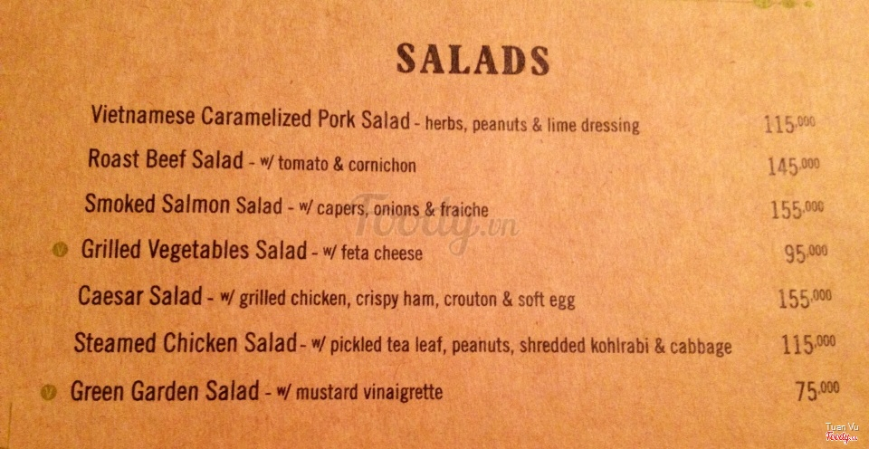 menu trên tường