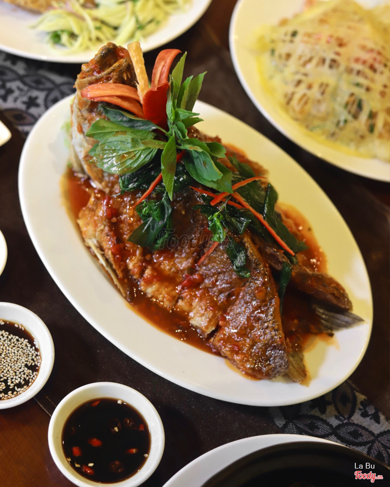 9.0Best đồ Thái của Sài GònCái này là nói thiệt luôn chứ không phải nói quá hay gì đâu. Lạc Thái là quán đồ Thái mà nhà mình đi ăn nhiều nhất, đợt này đi ăn với đứa em nên mới có dịp chụp hình, với đi chi nhánh bên Tân Bình có ánh sáng chứ bên quận 1 tối thui luôn dù đi trưa hay tối. Lạc Thái giống quán ăn gia đình vậy, cái bảng hiệu, logo, menu nội thất cực kỳ đơn giản, mình mà đi ngang qua ngoài đường là không để ý luôn đó. Nhưng bù lại chất lượng đồ ăn xứng đáng mười điểm. Giá các món ở đây nhìn thì tưởng khá cao, tầm 160k chưa thuế trở lên nhưng khẩu phần mỗi món cho 3-4 người ăn lận, tính ra là quá rẻ luôn huhu chứ mấy chỗ đồ Thái khác dòm giá cũng oke mà khẩu phần 1-2 người ăn à. Lỡ khen quá trời với đứa em mà món ra không ngon chắc mượn cái quần đội lên luôn :)) Mà hên quá chi nhánh này cũng ngon như bên Mạc Thị Bưởi. Đợt này tụi mình đi 3 đứa. Gà cuốn lá dứa chiên 160k thịt gà juicy, không bị khô, chấm với sốt giống Teriyaki ăn ngon lắm, phần 6 cục to. Gỏi cá trê chiên xù 180k là món must try khi tới đây nha, cá trên giòn rùm, xoài bào mỏng chua chua, nước mắm ngọt cay cực kỳ hợp. Tomyum tôm 185k+ có 4 con tôm mà tôm to tươi rói luôn, canh hơi chua quá, nếu thêm vị béo của nước cốt dừa thì oke hơn. Padthai 185k+ được đứa em mình ăn hết, nghe đồn cũng ngon lắm, y như bên Thái. Miến áp chảo với tôm 185k+, tôm vẫn to nhưng bé không thích miến lắm do vị tàu xì hơi nhiều... Cá chẽm chiên giòn sốt 3 vị 330k+, cá bao to, đi hơn 4 người hãy kiu nha bà con, sốt hơi đậm vị cà chua quá, cay thêm xíu thì ngon hơn. Chè củ năng 3 màu 30k với chè bánh lọt và mít 30k cũng ngon nốt do nước cốt dừa ở đây đúng kiểu nhà làm, ngọt thanh, béo, thơm vị dừa lắm. Xôi xoài 60k+ cũng xuát sắc thiệt sự, xôi dẻo thơm, xoài hơi chua. Trà sữa Thái ở đây chắc ít chỗ bằng, thơm thảo mộc thiệt chứ không phải pha bằng trà gói như mấy chỗ khác đâu. ...Xem thêm
