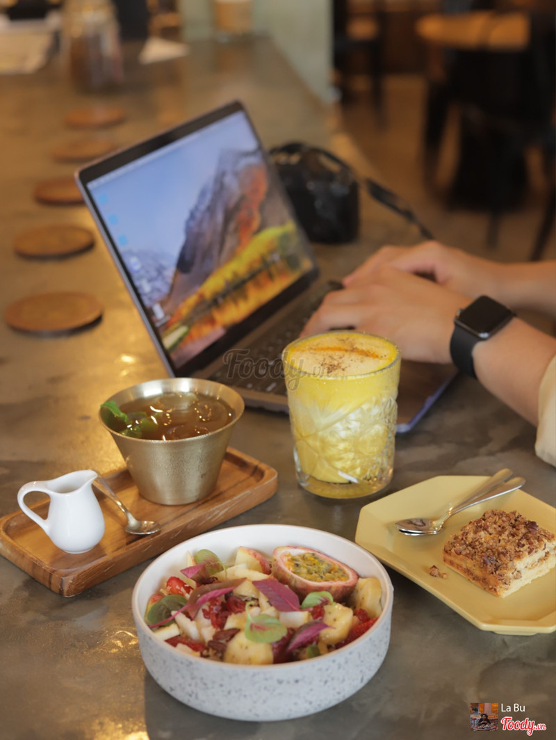 7.2Lacof Coffee ShopKhông gian tầng dưới của quán hơi nhỏ do quầy bar chiếm khá nhiều diện tích. Quán có thiết kế urban, chắc mọi người thường đến đây tụ tập hơn là làm việc vì bàn nhỏ mà ghế ngồi cũng hông thoải mái. Menu nước nhìn chung thì khá cao nhưng cũng đúng tầm giá trung tâm quận 1. Golden soy Latte là sữa đậu nành bí đỏ thơm béo dễ uống nhưng vị đậu nành át bớt bí đỏ ùi, món này không cần dặn ít ngọt nhen, uống bình thường là vừa. Kombucha uống lần đầu cũng oke nè, lên men nhẹ. Bánh yogurt siêu ngon, 35k mà ngon nhất trong mấy món này luôn, vỏ giòn, không ngọt. Cái tô yogurt này hơn 100k ăn okela thôi chứ bình thường, mấy lá rau dền trang trí không hợp lắm. ...Xem thêm