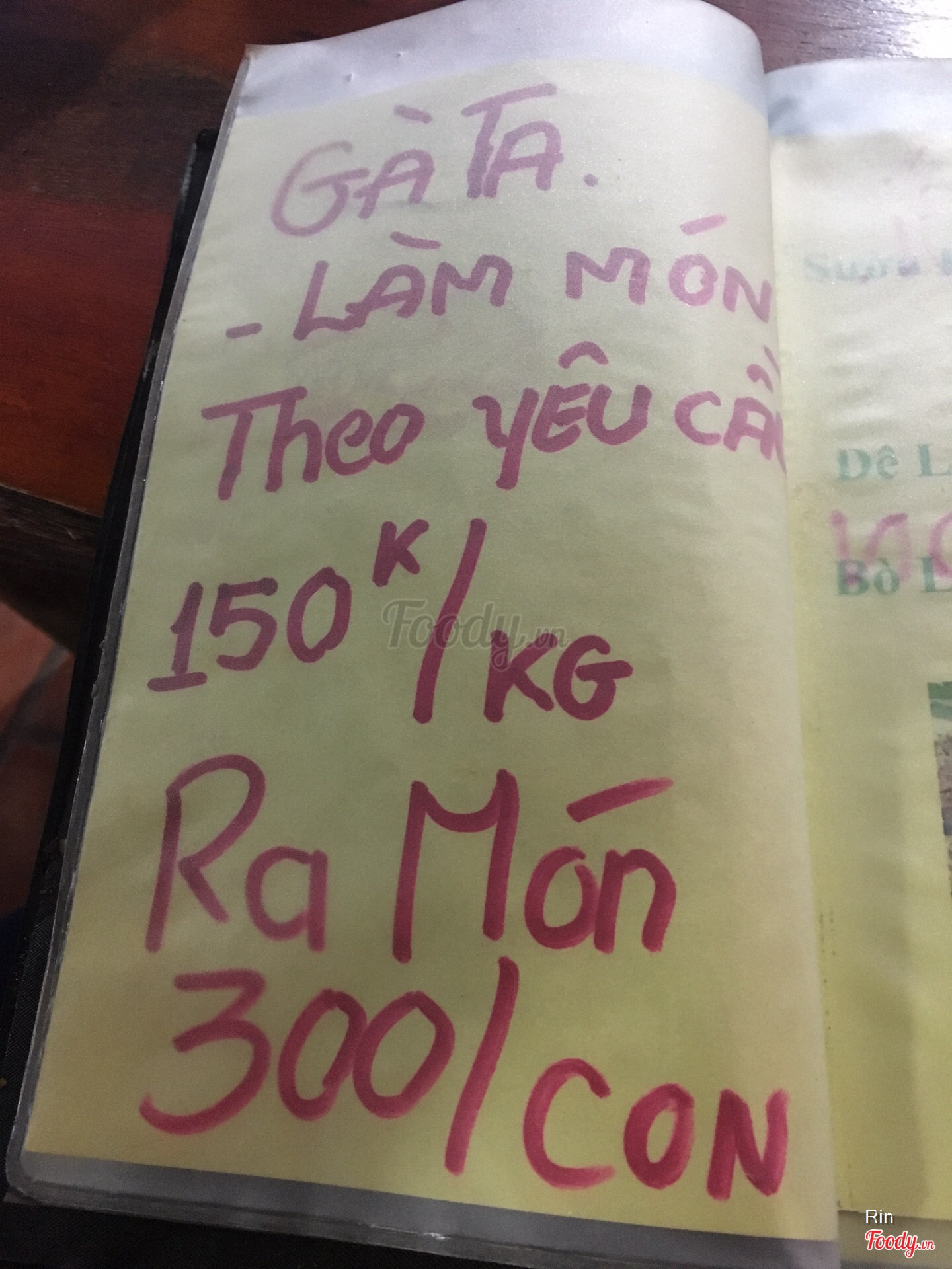 Ghi chú đặt bàn