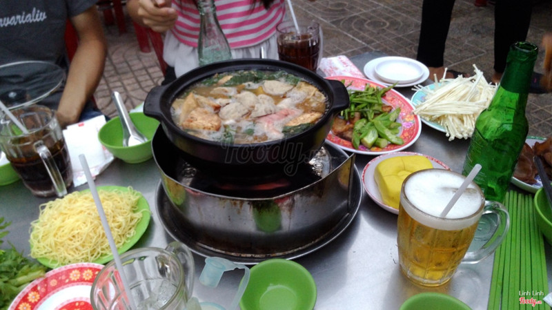 7.8Lẩu Dê Khánh Hoàng - Vĩnh ViễnThời tiết đang oi bức nên bạn bè kéo nhau ra đây ngồi cho thoáng, quán nằm ngay góc ngã tư có vỉa hè rộng rãi mát mẻ. Tên quán là lẩu dê vậy chứ menu đa dạng nhiều món lắm, có cả mấy món nướng nữa. Ngồi ngoài trời nướng thức ăn k bị ám khói nên rất dễ chịu. Thịt ướp đậm đà, do mình ăn lạt hơn mọi người nên chỉ chấm chút chao là vừa ăn. Miến tôm ăn rất ngon, sợi miếng dai và k bị dính, thịt tôm tươi. Phần lẩu dê thì nước dùng k bị hăng mùi dê như nhiều chỗ, thịt hầm mềm, gọi thêm nhiều món khác như óc heo, tủy bò, dê viên... làm ăn no cứng bụng. Phục vụ thiếu nên phải đợi 1 hồi, nhưng nhanh nhẹn. ...Xem thêm