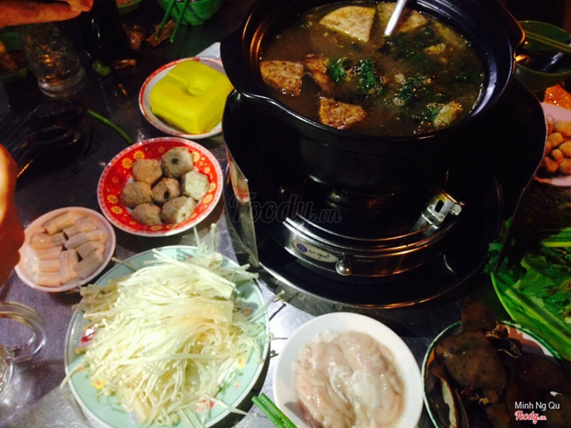 , rồi bún khô, mì, rau tần ô, vân vân và mây mây, mình quên rồi :"> trong lẩu thì có thịt với củ sen rồi nè ở đây dùng nồi đất nên đợi sôi hơi lâu, nhưng thôi, đợi chờ là hạnh phúc mà, đặc biệt là đợi ăn :"> mà khi sôi rồi thì ăn bao đã nha lẩu nêm nếm vừa miệng nè, nếu muốn đậm đà hơn có thể cho thêm tí chao vào, chao có sẵn trên mỗi bàn, cứ tự nhiên thôi nạ món này mình cảm giác ăn với bún khô và rau tần ô là xuất sắc nhất <3 tới vú dê thì nhà mình hay gọi nướng sẵn luôn chứ để tự nướng ko biết nướng, ko ngon mà dầu mỡ bắn tùm lum, 1 dĩa hình như cũng trăm ngàn, ko nhớ rõ nữa mà nướng ra hụt hẫn lắm vì teo còn có húm hà :( nhưng mà ăn ngon vô cùng, đặc biệt là ăn với đậu bắp với rau muống nữa, trời ơi ngon phải biết luôn í bà chủ với nhân viên cũng khá là ok nè có điều gửi xe phải tốn tiền nữa . ...Xem thêm -