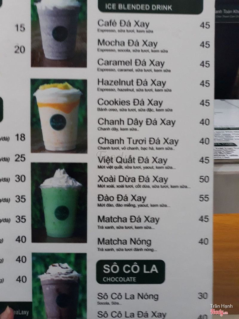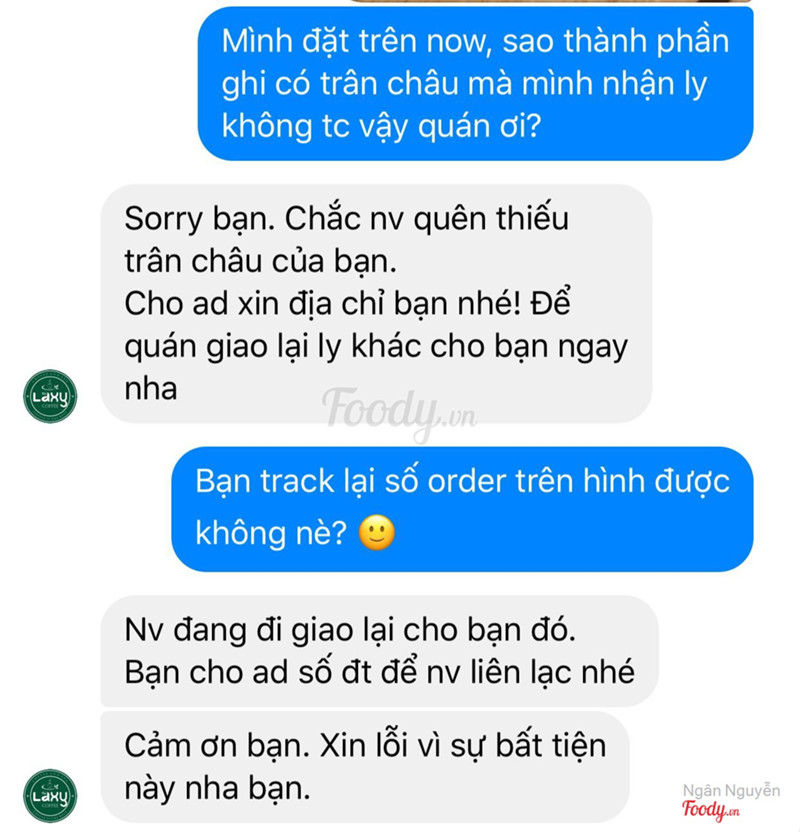 4.2Laxy Takeaway - Nguyễn Thái BìnhMình mua trên Now về uống, Trà sữa Oloong thì nhạt toẹt, CF sữa thì như nước dão cf v á, không có tí mùi sữa nào, cái ly đen thui. Thất vọng k hề nhẹ, ngay cả ly cf sữa cũng làm dở được, bạn mình nuốt k nổi phải mua ly khác luôn á ~~ Chắc do đang áp dụng KM hay gì mà làm ăn chán ghê >.< ...View more