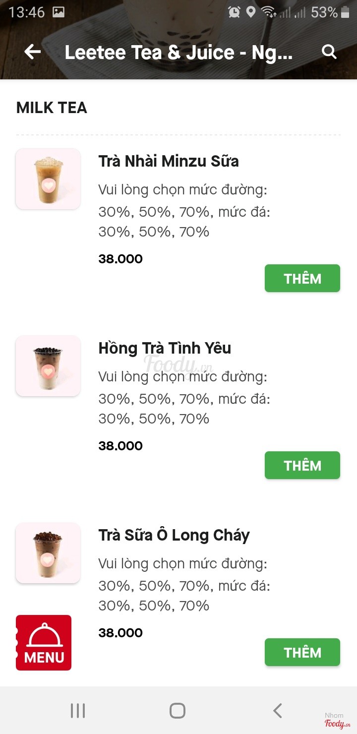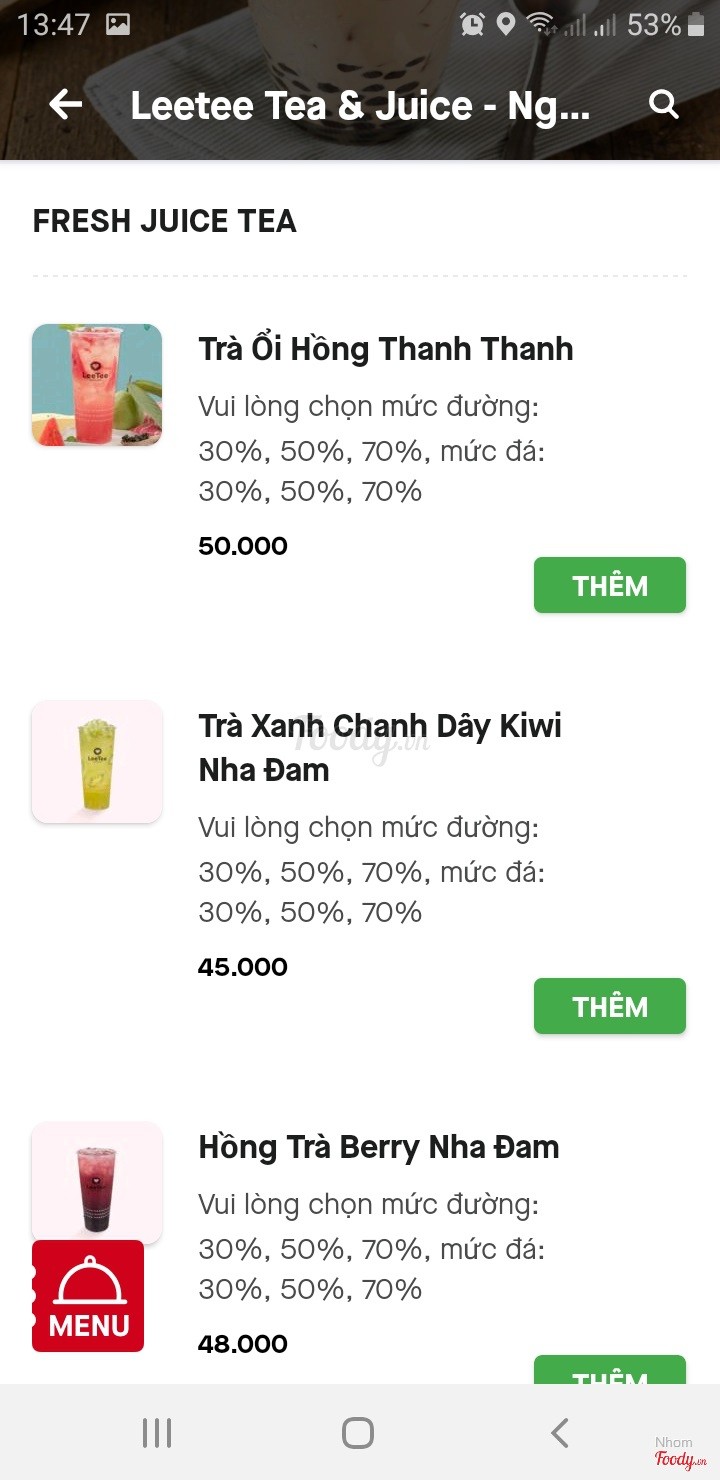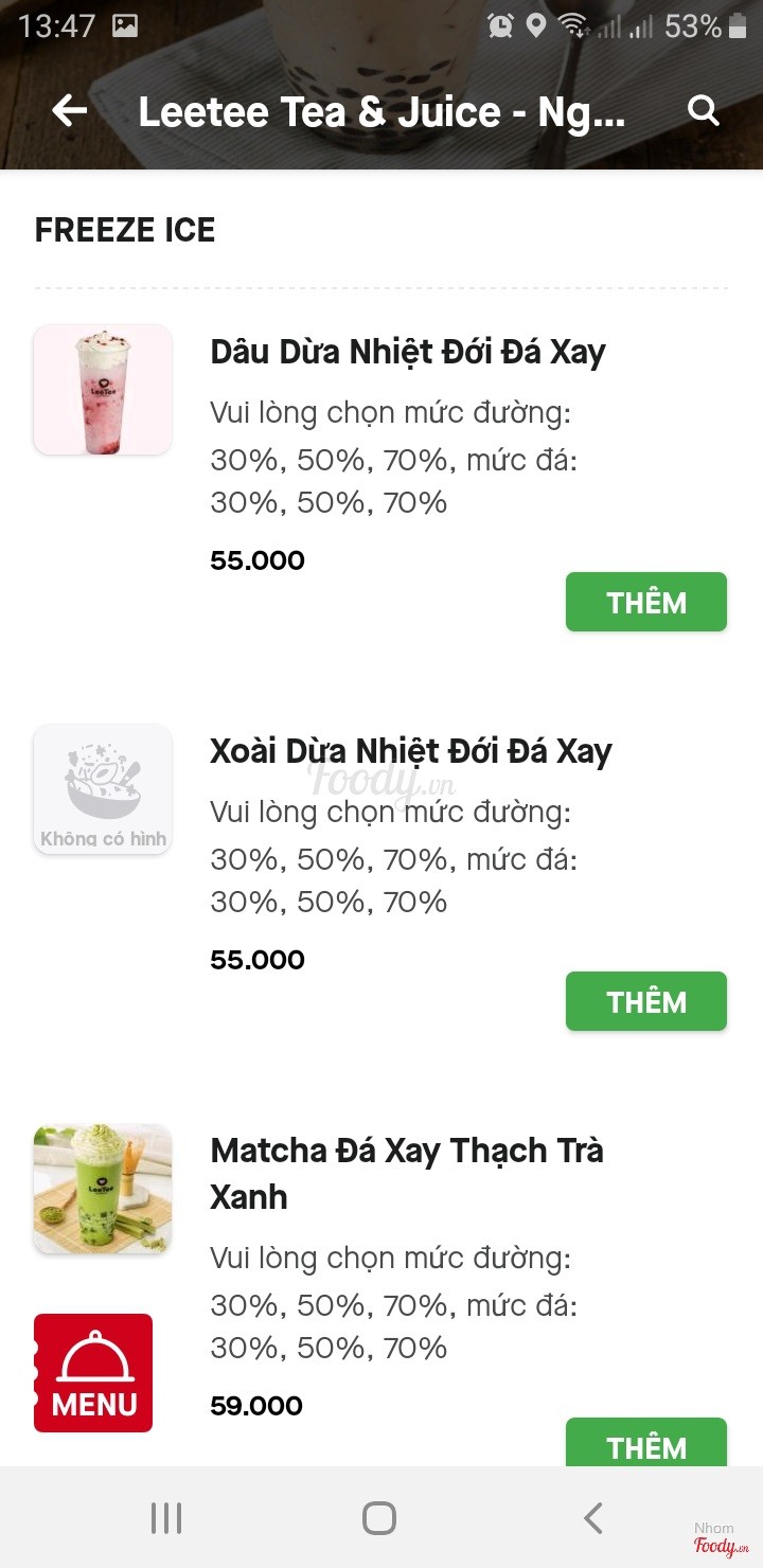 1.0TệThức uống đặt ko giống như trên hình, đặt 1 ly Trà ổi hồng Thanh Thanh mà ko có 1 miếng ổi nào, quá tệ! Không bao giờ mình order quán này nữa ...Xem thêm