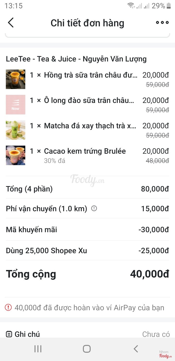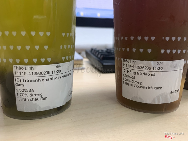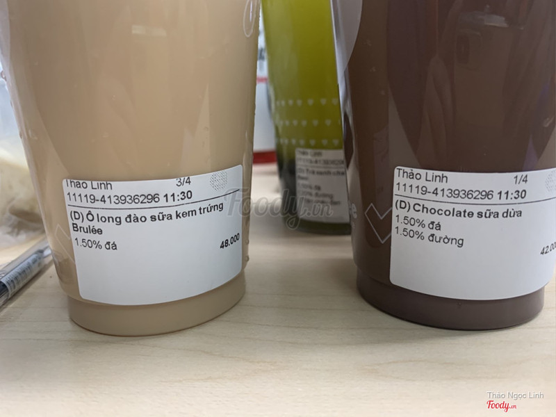 6.0Trà Sữa LeeTee - Tea & Juice -***Tình cờ thấy ly của quán này xinh nên là order vậy thôi. Ai dè chọn ngay mấy món không phải dùng cho ly xinh xinh đó. Hồng trà đào sả và trà xanh chanh dây kiwi nha đam uống cũng ngon, đậm vị trà. Socola sữa dừa không ngon, nhiều socola nên bị đắng và lất át vị dừa. Và oolong đào sữa kem trứng Brulee thì ngon, mình giảm đường đá nên uống rất vừa miệng và thơm, lớp kem sữa khá ngon nha. Mà ngộ cái order 4 ly thì chỉ có 1 ly có đá và 3 ly không đá trong khi cả 4 ly đều 50% đá hết. mình order là được giảm trực tiếp trên giá món nên cũng rẻ. Chất lượng cũng ngon nhưng tuỳ món nà ...Xem thêm
