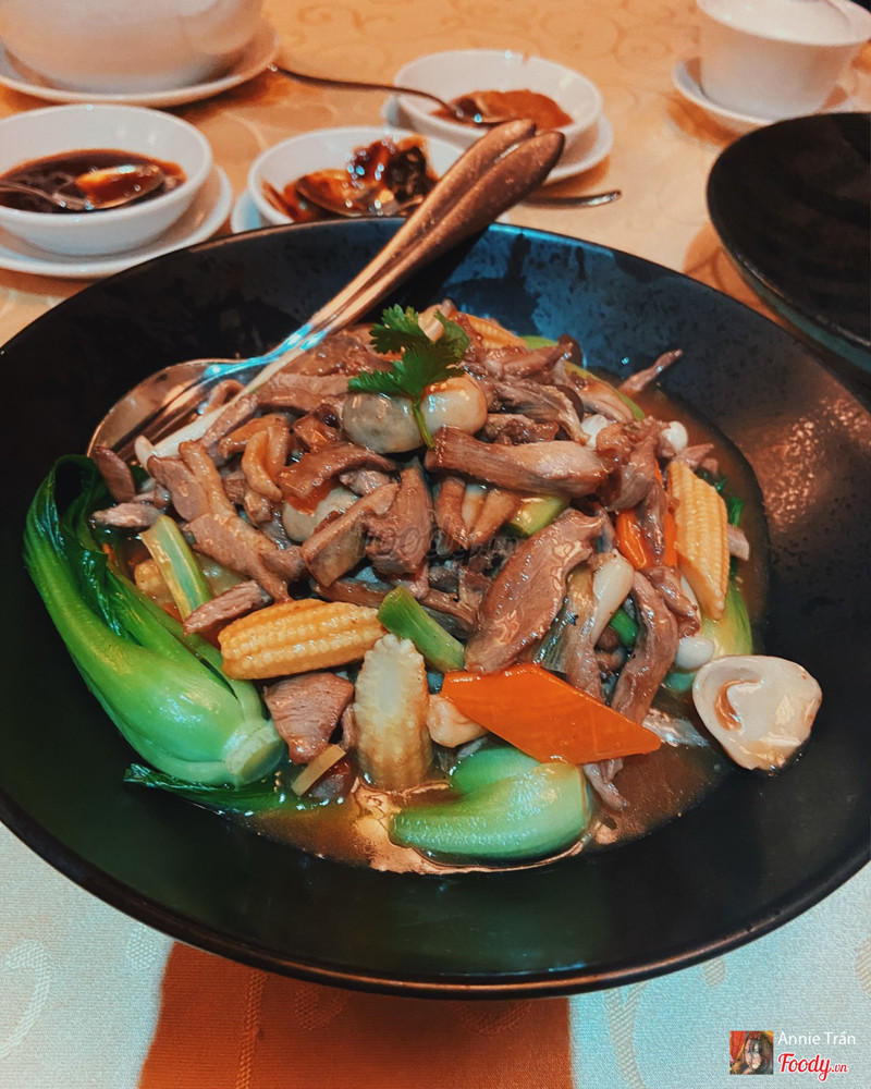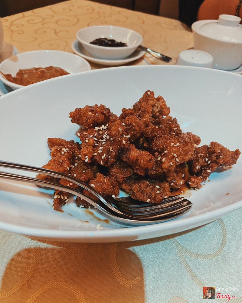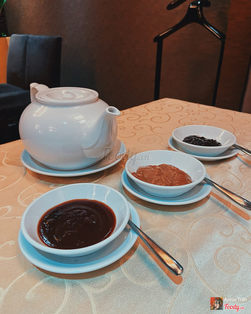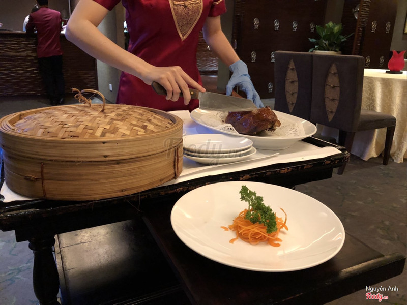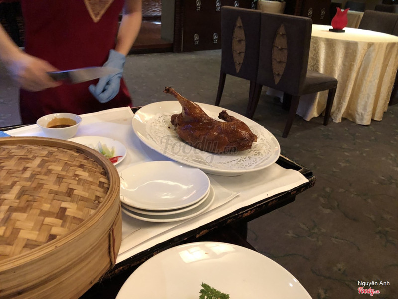8.8Li Bai Restaurant - Sheraton Saigon Hotel & TowersĐi vào t7, cuối tuần mà nhà hàng không đông lắm, yên tĩnh, kèm nhạc du dương êm tai. Phục vụ nhiệt tình niềm nở, châm trà liên tay. Bài trí ấm cúng, khá sang trọng Gọi 3 món: - Vịt quay Bắc Kinh nửa con đốt rượu: mùi đốt ruou gạp thơm dã man, da vịt giòn, mỡ tan chảy kèm thêm tận 3 loại sốt là Hoishin, đậu phộng và tương mận. Tương mận ngon nhất, chua dịu mặn ngọt, tương hoishin thì quá quen thuộc rồi, đậu phọng thì bùi béo cũng ngon lắm luôn. Cuốn với bánh tráng bột mì có đầu hành và ớt xắt, ăn thích lắm - Mì xào thịt vịt kèm sốt: mì dày bản xào vừa tới, thơm mùi áo chảo, thịt vịt thơm mùi gừng, một dũa đầy ụ luôn. Có bắp non, cải, nấm các thứ nữa - Gà chiên giòn xốt đặc biệt: gà giòn không khô thịt bên trong, có mè trắng, xốt ngọt mặn vừa tới - Súp chua cay: hơi chua quá, không cay lắm, khá nồng gia vị, không thích món này lắm. - Trà nhài nóng nhàn nhạt không đặc sắc Tổng bill tầm 1 triệu 200k. ...Xem thêm