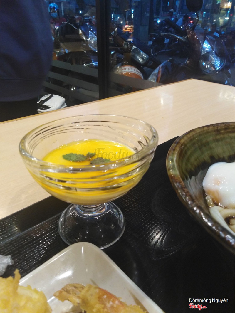 7.8Riêng tư để đi ăn 1 mình!!Đi làm về đói sớm nên đành tạt qua quán ăn, gọi phần mì số 5 - bò trứng (khô) size nhỏ, 2 món tempura và dessert pudding chanh dây ăn no luôn. Đi trễ nên ngồi trên lầu được. Hơi đông nhưng không ồn ào, ăn một mình cũng không bị dòm ngó. Trên lầu sạch sẽ, nội thất gỗ kiểu style Nhật luôn mà hình như không có ngồi bệt nên mình thấy đỡ. Udon ngon, sợi dày nên no lâu. Tempura trứng lòng đào với chả cá vừa ăn, ngon mà cũng tương đối lạ. Phục vụ nhanh nhẹn, ngồi trên lầu được gửi khay đưa thang máy lên giùm nữa. ...Xem thêm