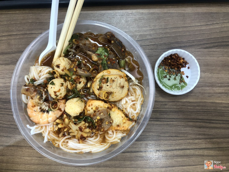 6.6Ngon !!!Mình đặt trên baemin phần Bún Thái đặc biệt siêu cay, km nên có 34k thôi, có 1 con tôm, 4 cục cá viên, 3 cục mực, 1 miếng chả lụa, 2 miếng chả quế, 5 miếng thịt bò, tất cả đều nhỏ xíu và siêu mỏng, bún không quá ít cũng không nhiều, nếu ai mạnh ăn thì không no, tính ra nếu ăn giá gốc thì quá chát, nhưng bù lại ngon, nước đậm đà chứ không có dở, độ cay tầm cấp 1-2, nhưng cay này là do bỏ nhiều sa tế. ...Xem thêm